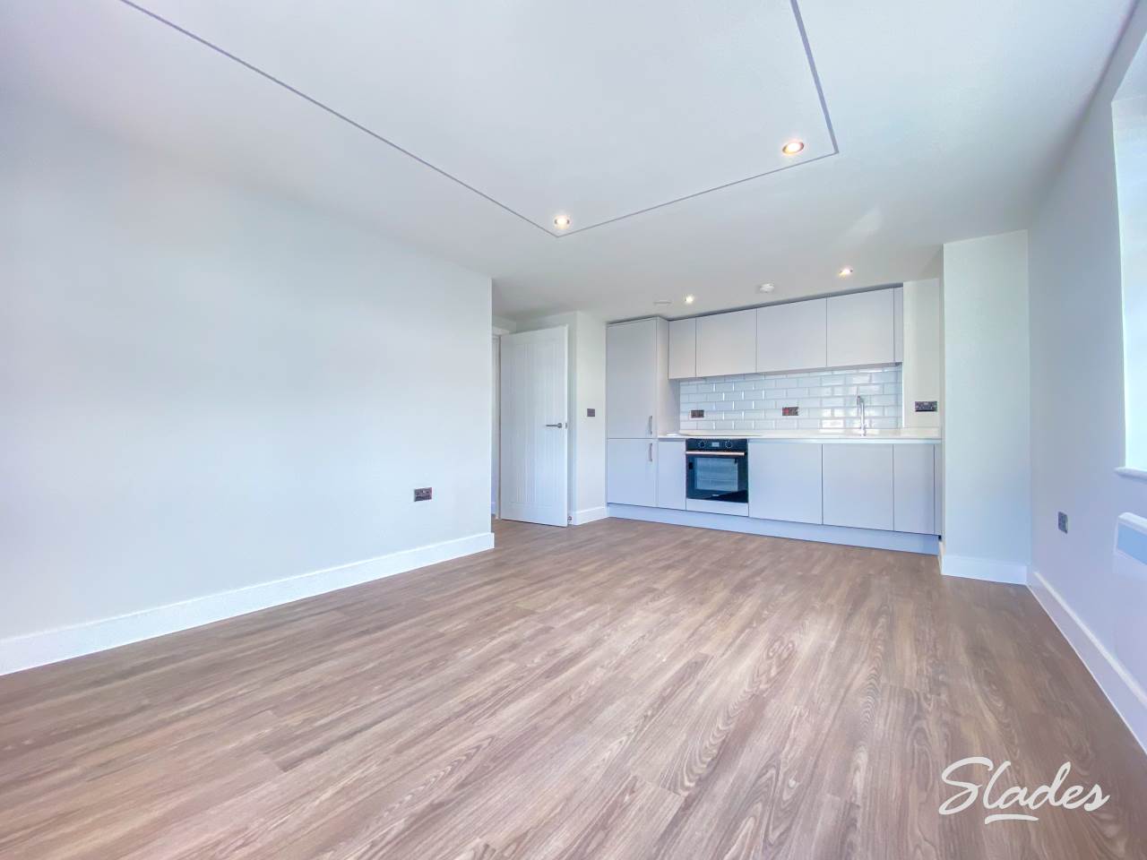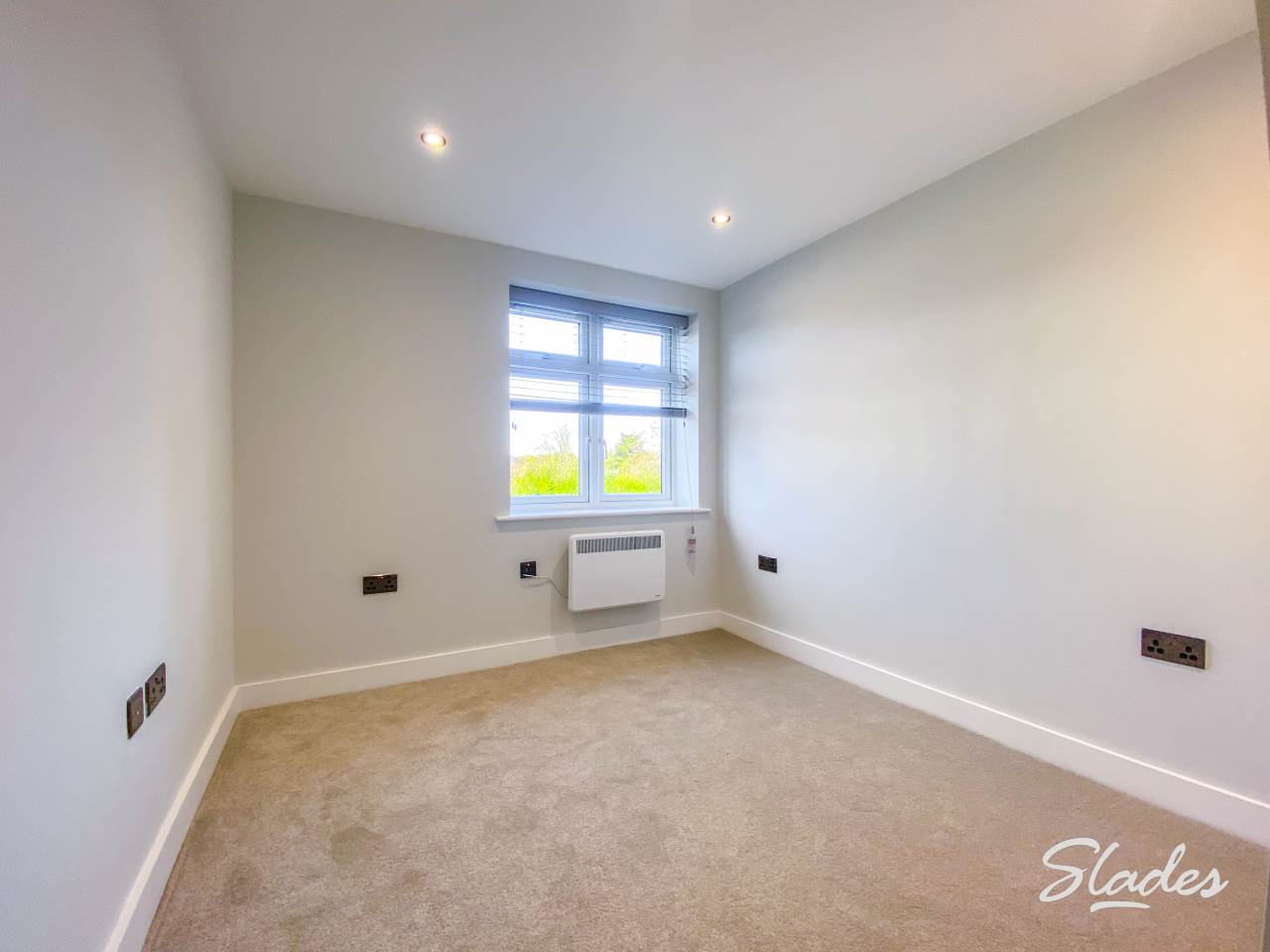 The spacious double bedroom benefits from a large built-in wardrobe, while the stylish bathroom offers an ultra-modern finish, featuring a rainfall shower over bath and a heated towel rail.
