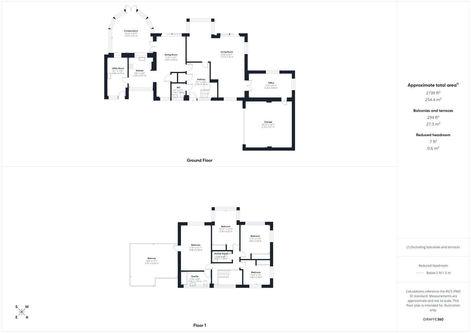 Upstairs there are four well proportioned bedrooms, three with built-in storage. The principal suite features an ensuite and balcony, with far-reaching views across the gardens. A shower room completes the first-floor accommodation.