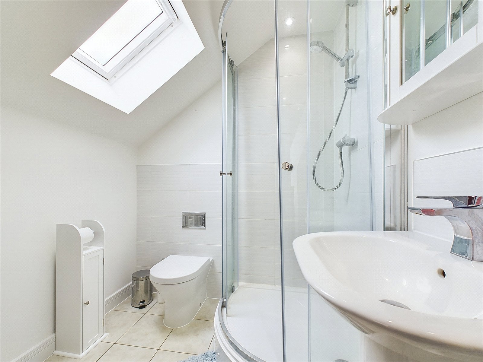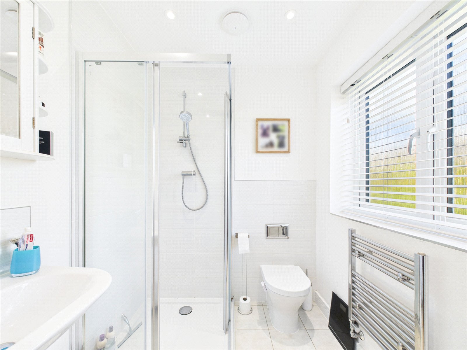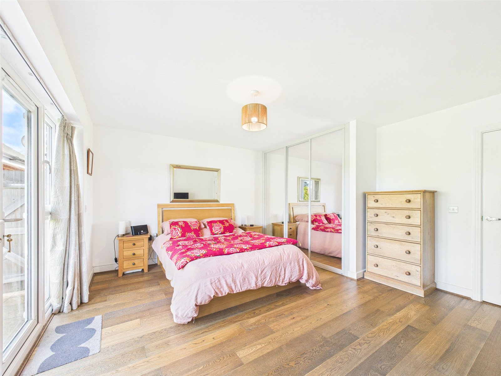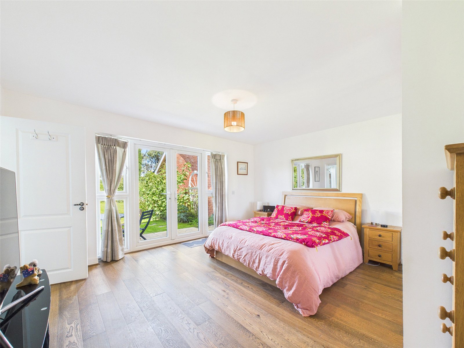 The main ground floor Bedroom enjoys twin doors opening to the Rear Garden and is further complemented by a modern En Suite Shower Room featuring a matching white 3-piece suite.