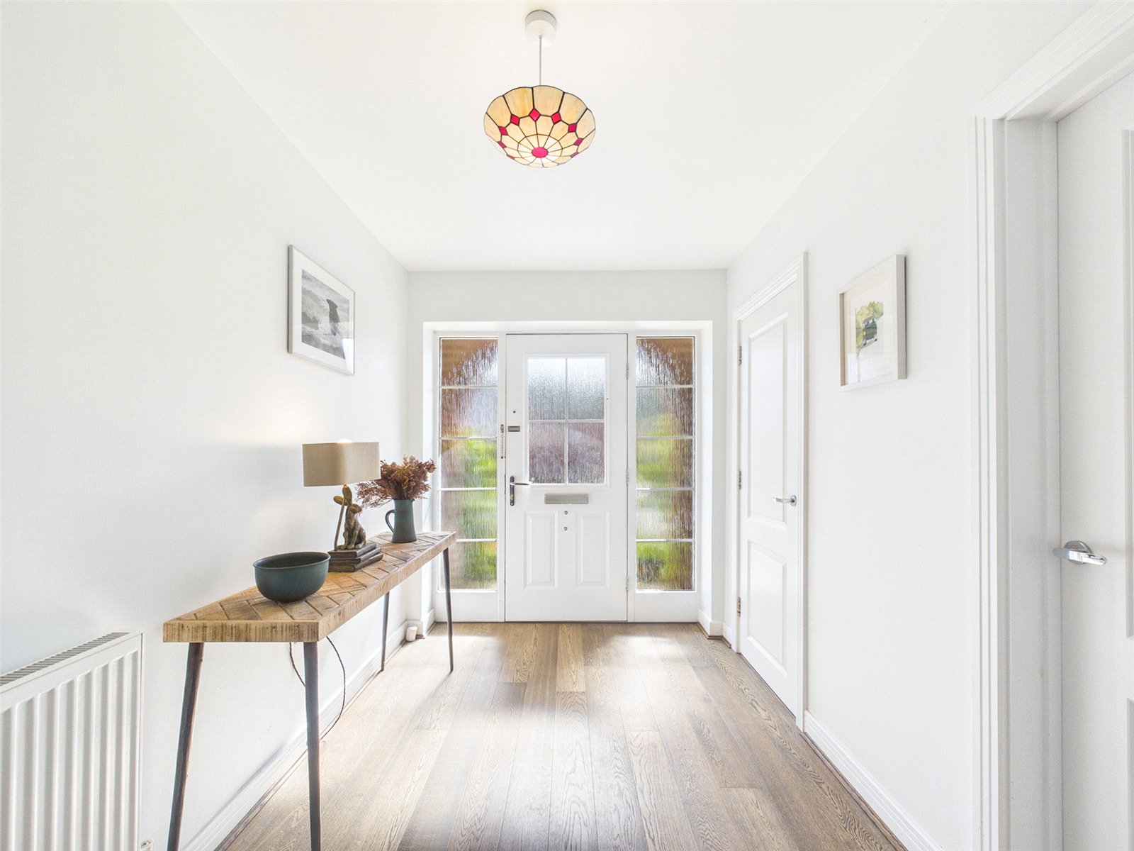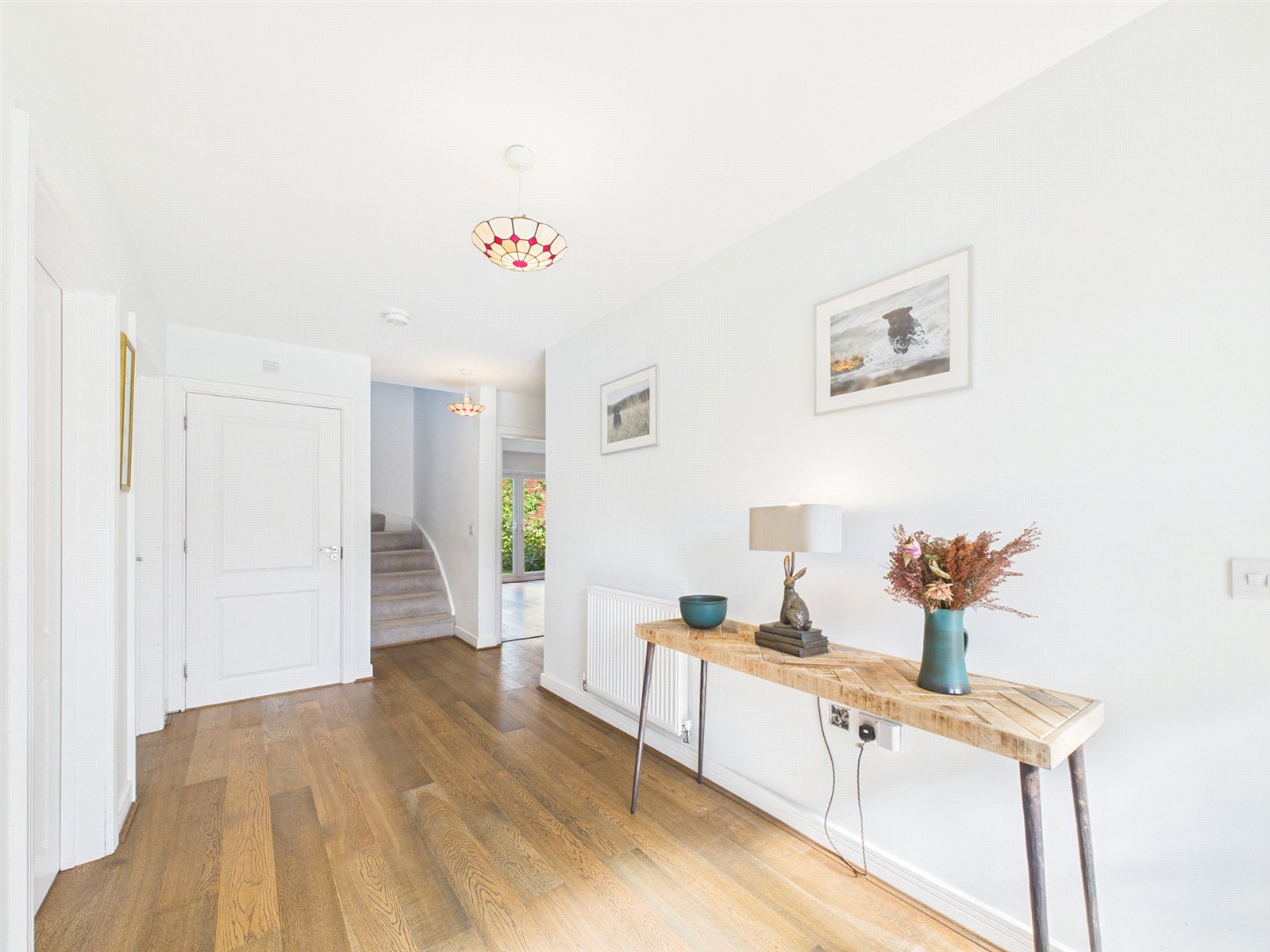 A covered Porch area opens to a spacious Entrance Hall with wooden flooring. There is a convenient ground floor Cloakroom.