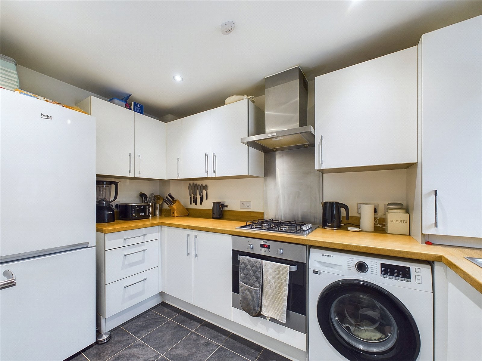 Accessed via an initial Entrance Hall, the ground floor accommodation consists of a large dual aspect Living Room with a convenient under stair cupboard and access to the rear Garden, a modern Kitchen which is fitted with a comprehensive selection of cupboard and drawer units and a ground floor Cloakroom.
