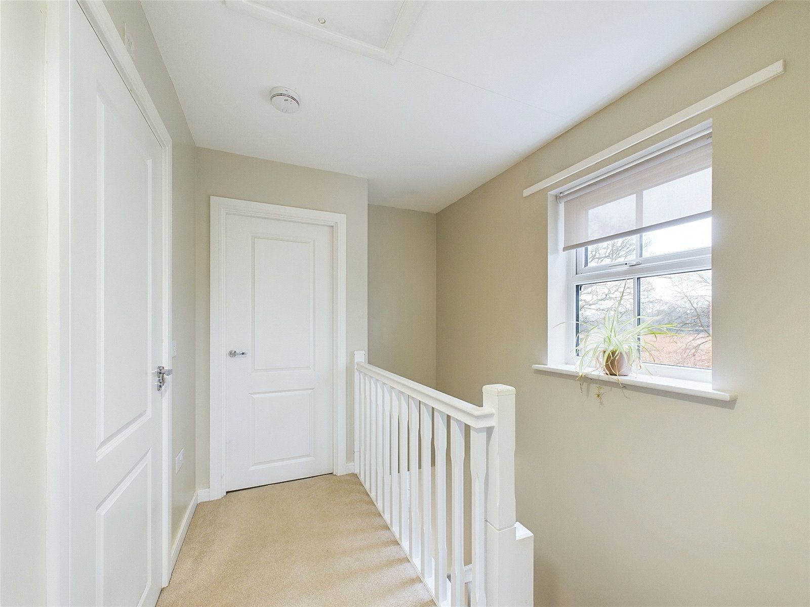 The First Floor Landing which enjoys a window to the side, offers a useful storage/linen cupboard and a hatch providing access to the loft space.