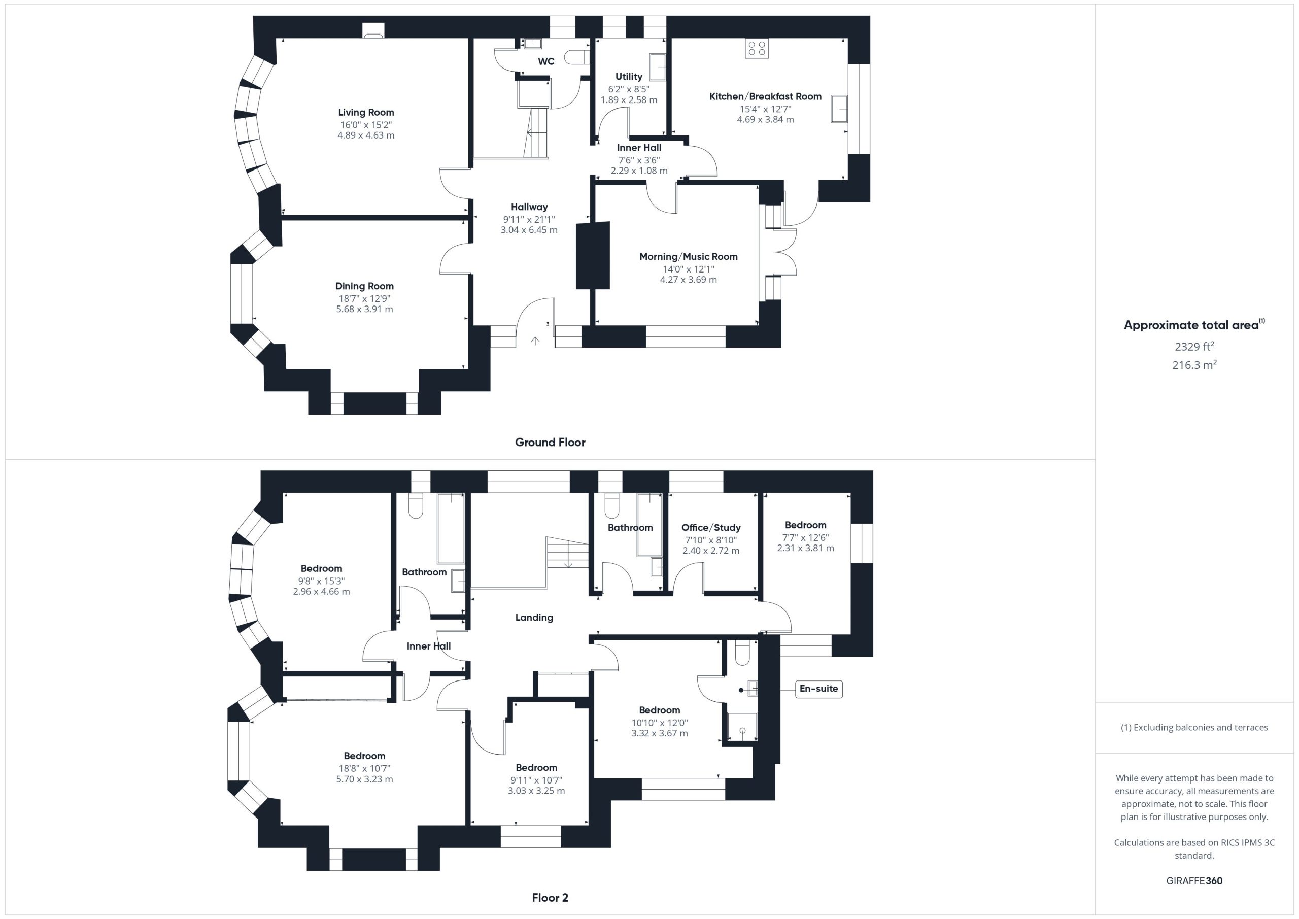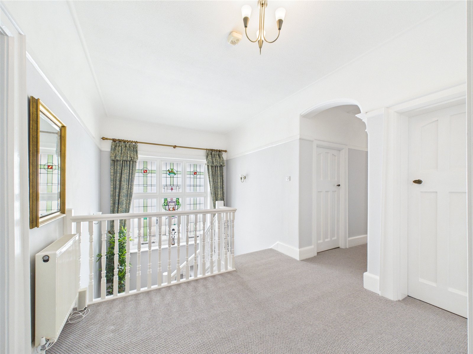 Moving up to the first floor a large landing leads to all bedrooms. The property offers up to five bedrooms which are served by two modern bathrooms and an en-suite shower room. Arrangement is however flexible as the two front facing bedrooms have an interlocking hallway enabling them to be arranged as a large master suite with dressing room and en-suite. There is also a study/office which could even be used as a 6th bedroom.