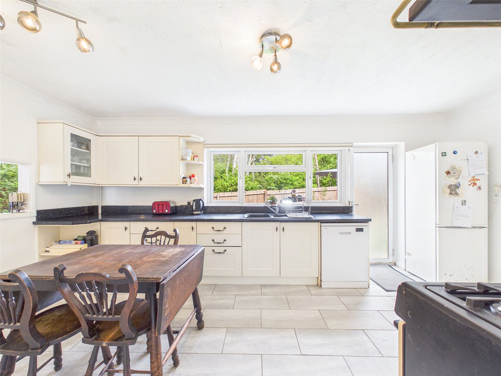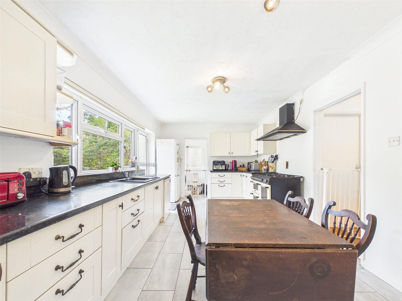 The Kitchen/Dining Room which affords an attractive outlook over the rear Garden offers a large selection of cupboards and drawers and a Range style oven.