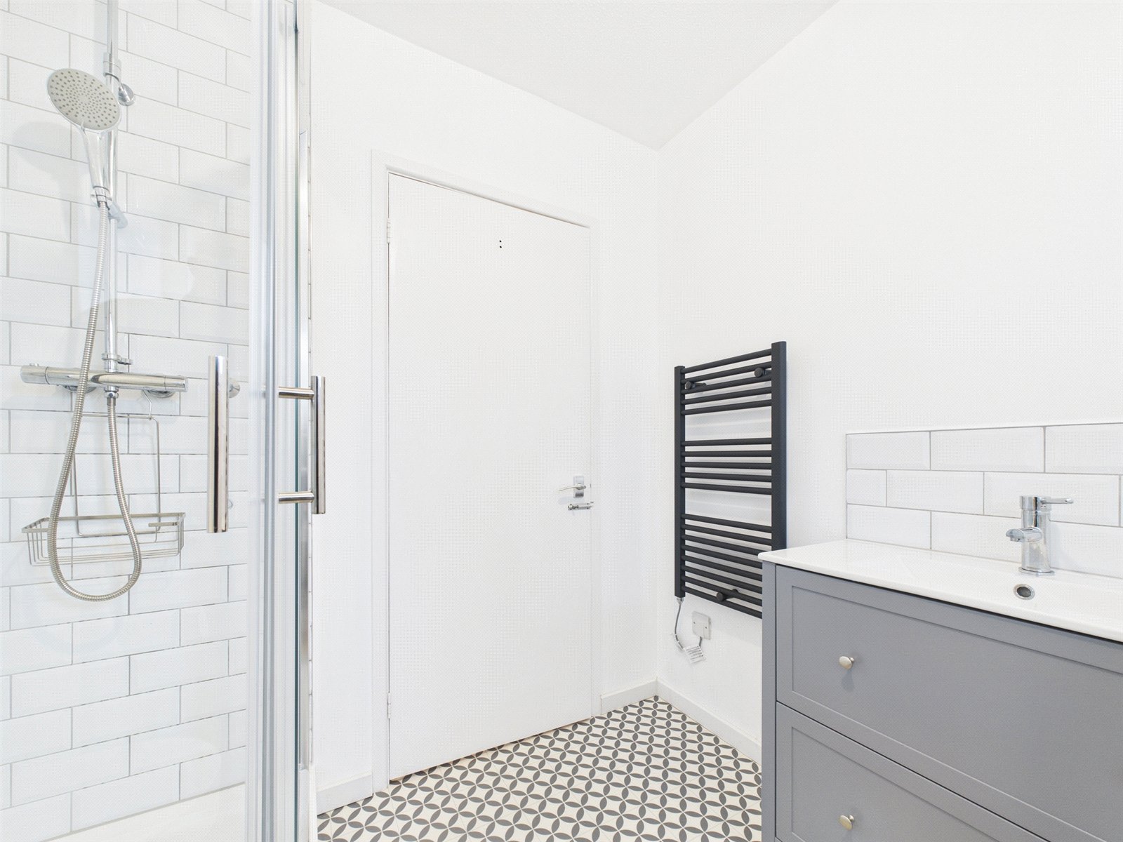 The modern, recently fitted bathroom comprises a bath, separate shower cubicle, WC and a wash hand basin set into vanity drawer. Partly tiled, with a heated towel rail and an obscured glazed window. There is an additional separate cloakroom with WC and wash hand basin.