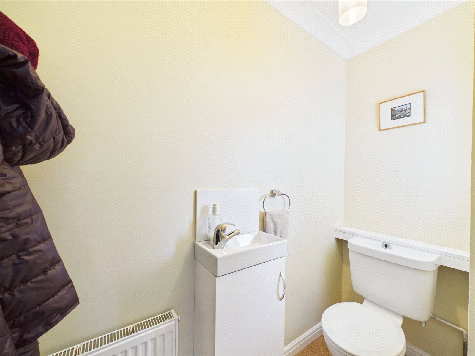 The dining room sits adjacent to the living room and offers a well-proportioned space for formal dining or family gatherings, with convenient access through to the kitchen. The kitchen itself provides ample worktop, storage space and space for appliances. A ground floor WC is also accessible from the hallway for added practicality.