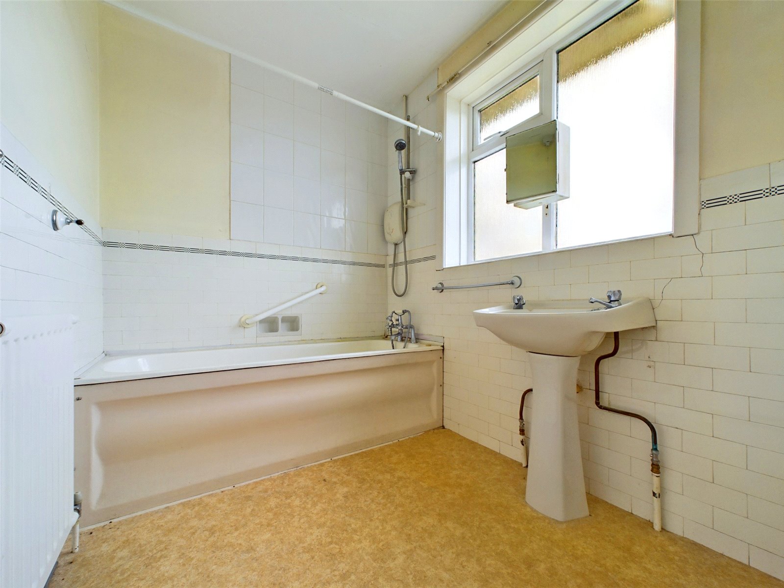The bathroom offers a panel enclosed bath, wash hand basin and a cupboard housing the hot water cylinder. The walls are partly tiled and there is a UPVC obscured window to the rear aspect. There is a separate WC next to the bathroom which could be knocked into one to create a larger bathroom.