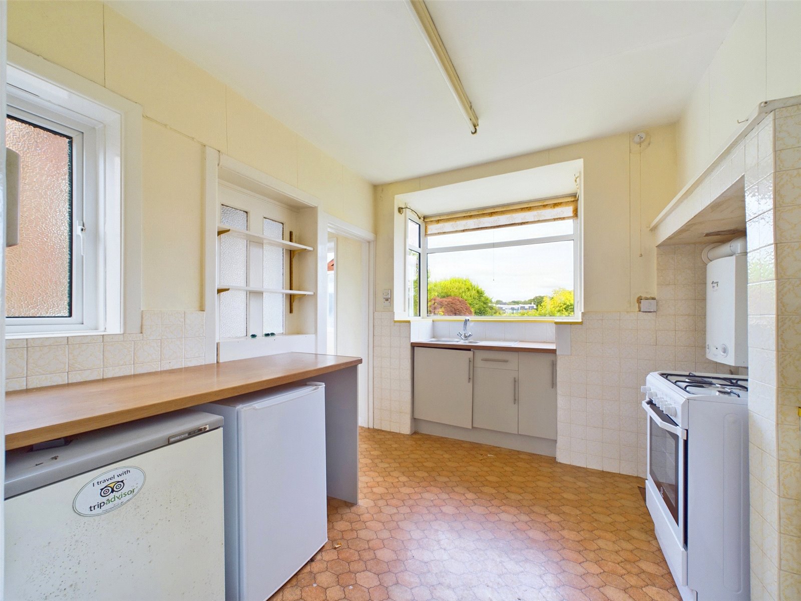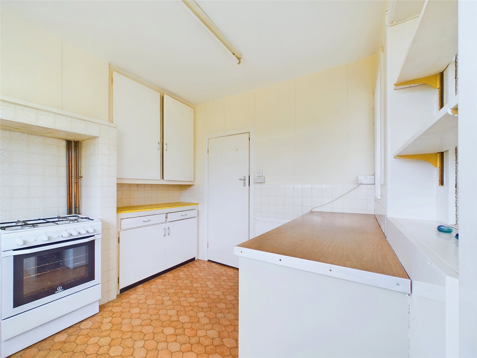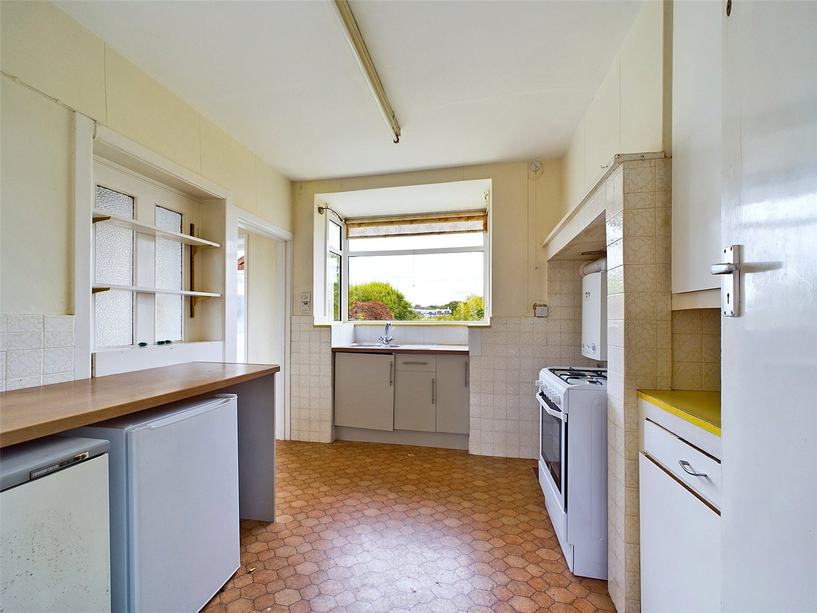 The kitchen, which is in need of updating offers a limited range of units with work surfaces and space for a cooker and other white goods. There is a UPVC window offering a pleasant view over the garden, a small larder room and access to the garden via a small sunroom which also has plumbing for a washing machine.