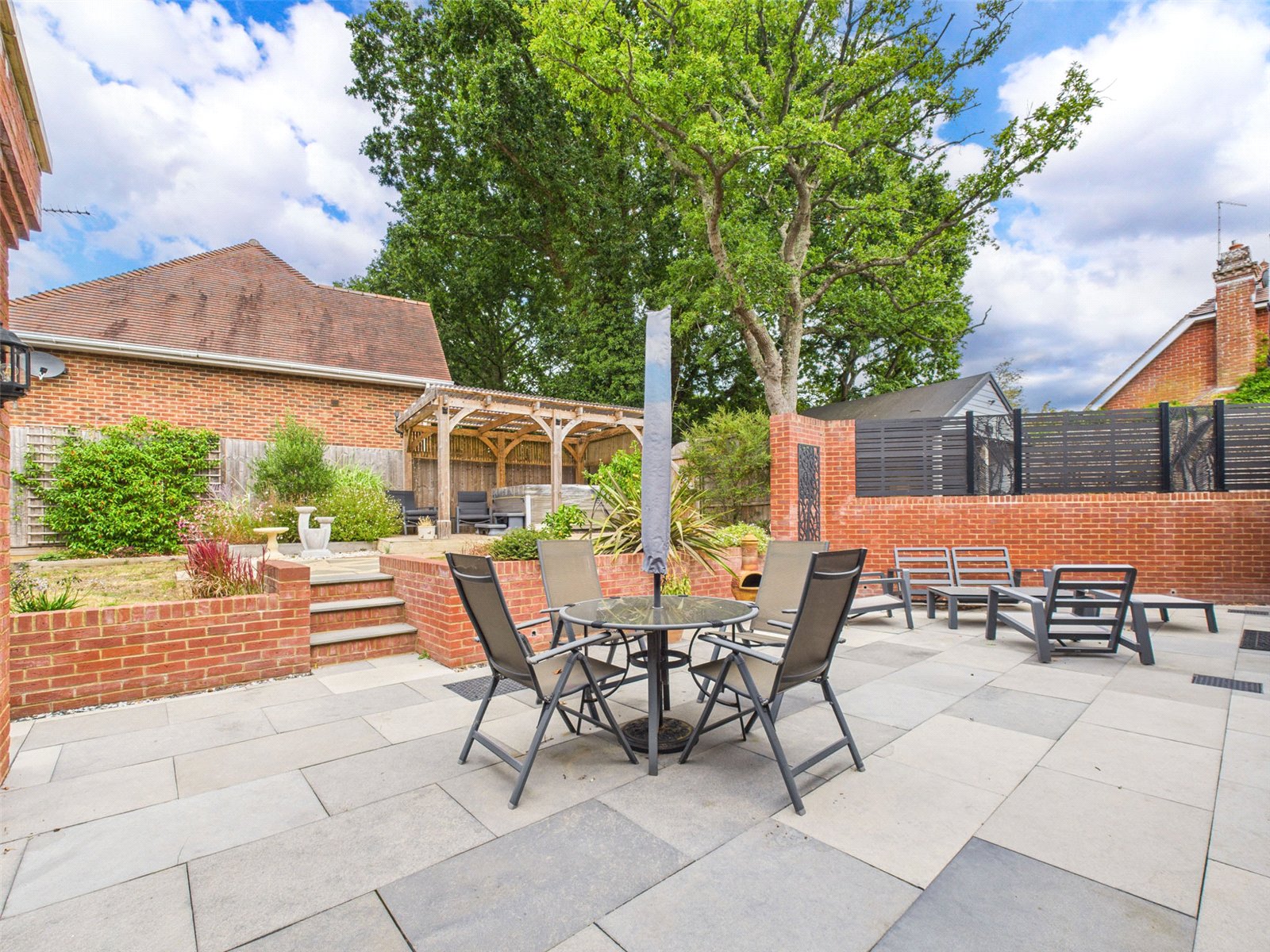 The landscaped Rear Garden, which is enclosed by brick built walls and timber panelled fencing, offers a good degree of seclusion and enjoys a large paved Patio and an area of lawn. There is also an impressive Garden Room suitable for various uses which has heating and air conditioning.
