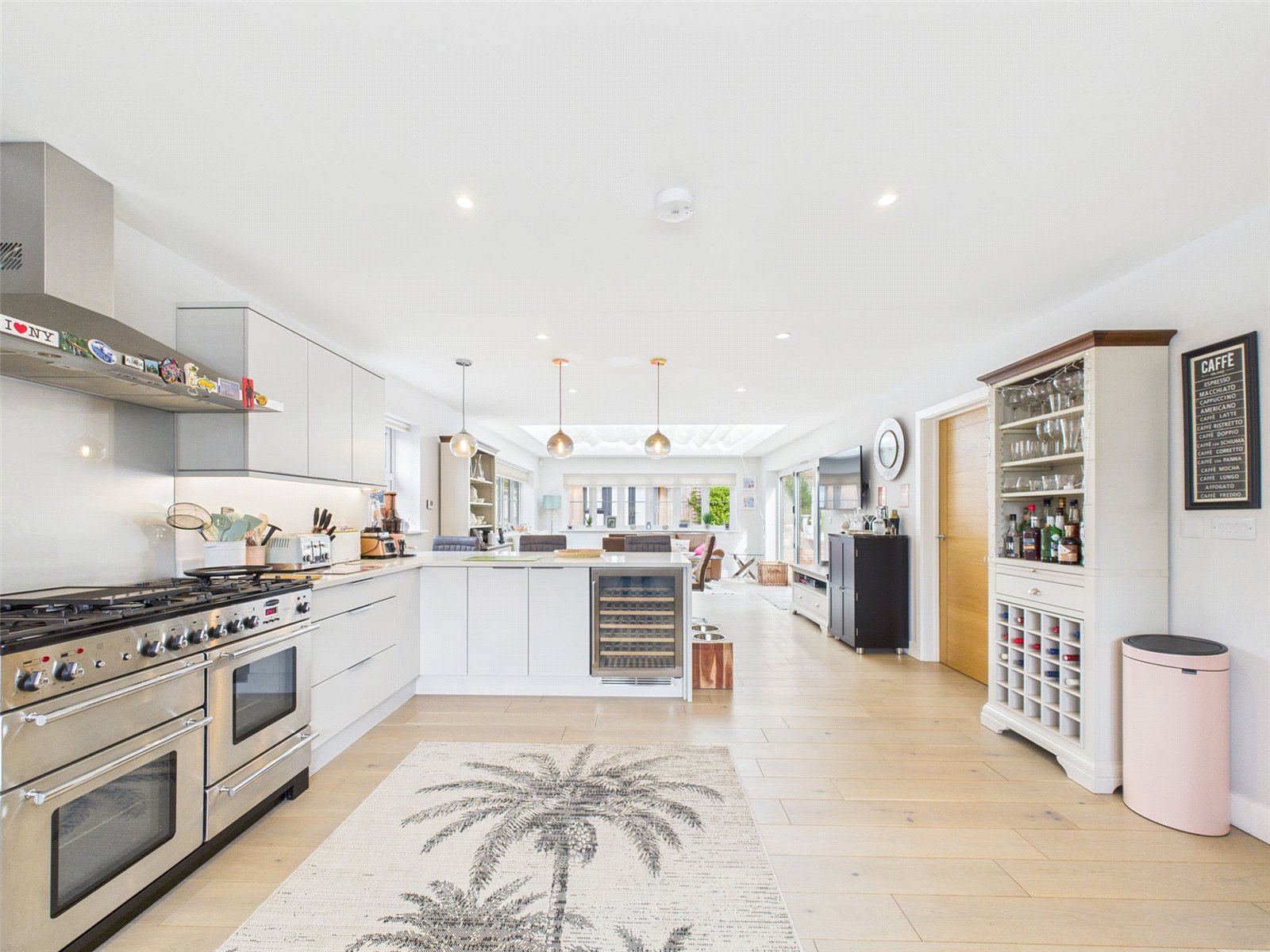 The ground floor offers a spacious dual aspect Sitting Room featuring a chimney breast facilitating a gas fuelled stove and offers twin doors to the rear Garden. At the hub of the home, the stunning 35 foot long Kitchen/Dining/Day Room which enjoys a triple aspect with an Orangery at the far end offering bi-fold doors to the Patio, the Kitchen is fitted with high quality units, Quartz worktops, an instant boiling water tap, engineered Oak flooring and incorporates a Range oven and gas hob, an American style fridge/freezer and a Wine Cooler.