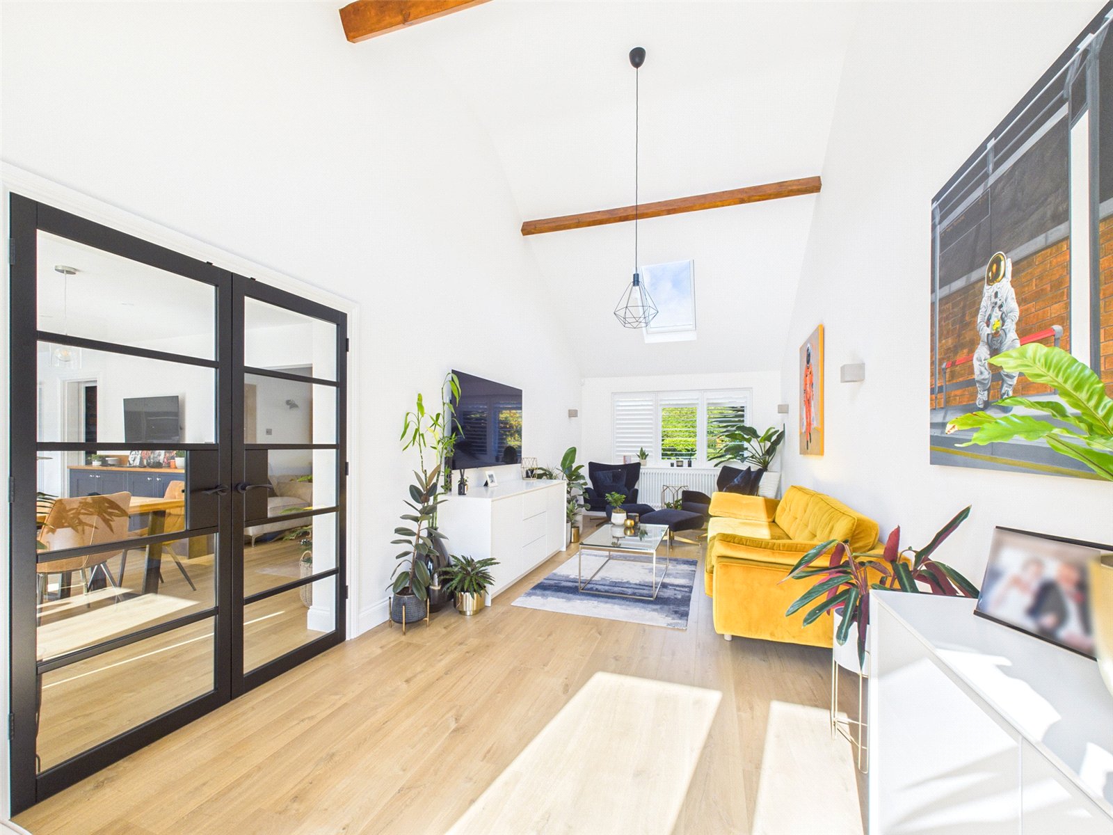 The Lounge is situated to the side of the property which enjoys a dual aspect to the front and rear with a vaulted ceiling and French doors to the Garden.