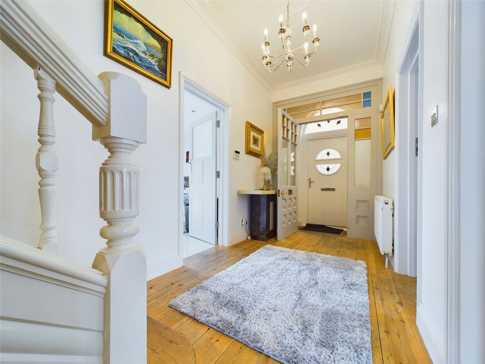 Upon entering the property, you are welcomed by an incredibly spacious entrance hallway, with original stripped wooden floorboards and doors leading to the living room, dining room and full width Kitchen/Diner.