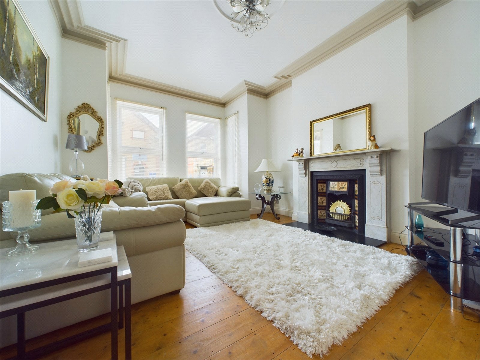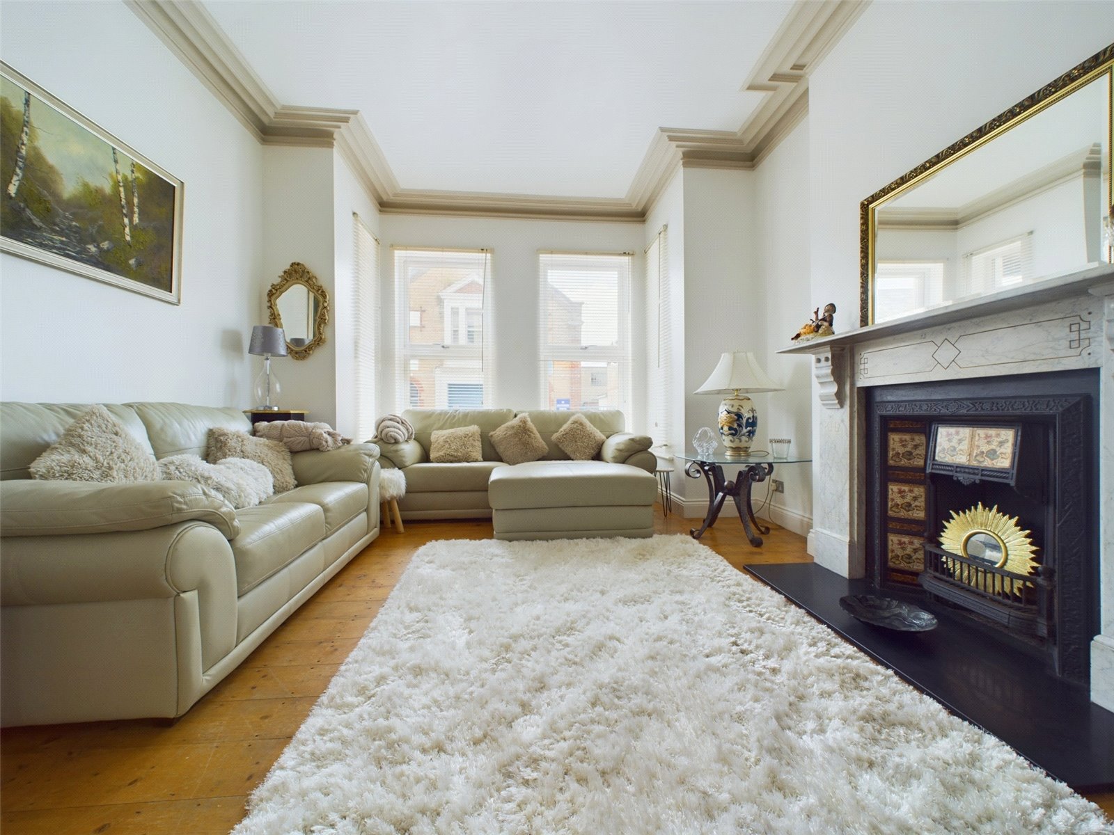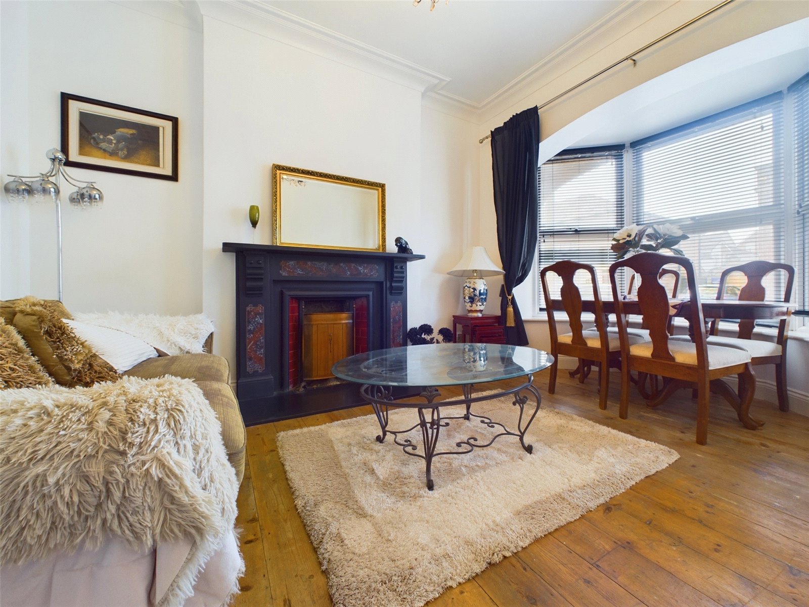 The formal living room can be found to the front of the house and benefits from a feature box bay window and an original fireplace. Wooden flooring is continued and there is ample space for sofas and other living room furniture.