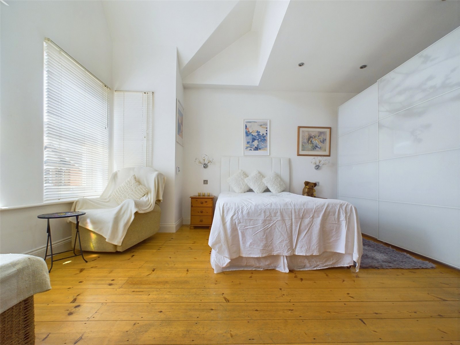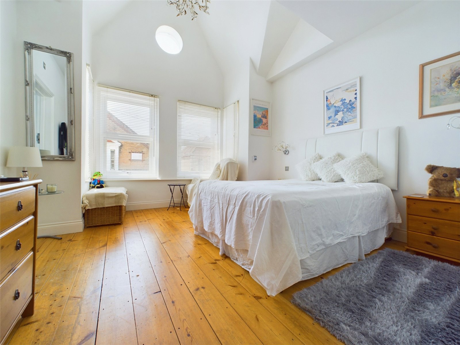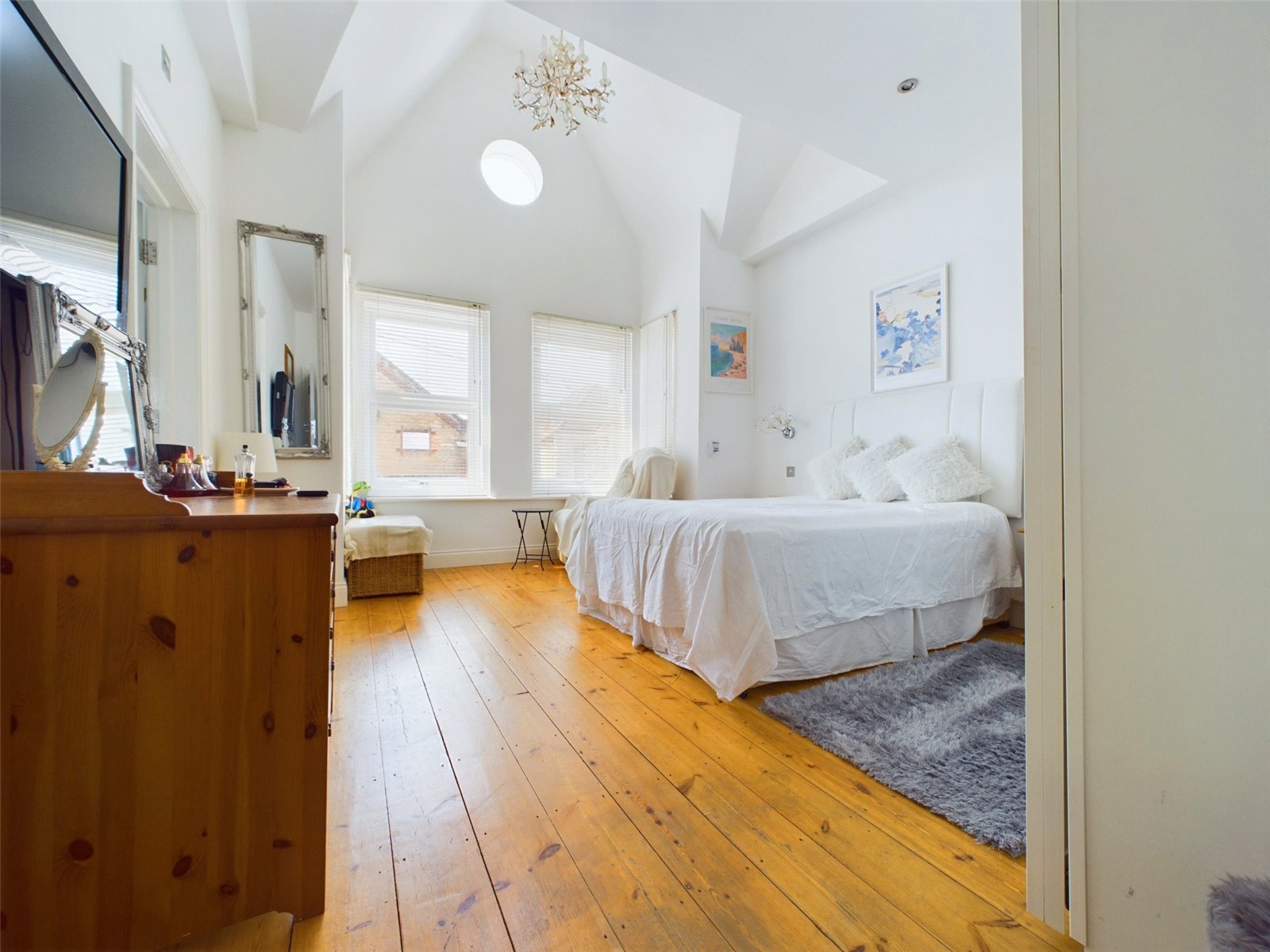 The largest of the three bedrooms is a stunning room, with semi-vaulted ceilings and a porthole style window giving a tremendous sense of space to an already large room. There is stripped original floorboards which are continued throughout the first floor, a large UPVC bay window to the front aspect and space for a King sized bed and other bedroom furniture.
