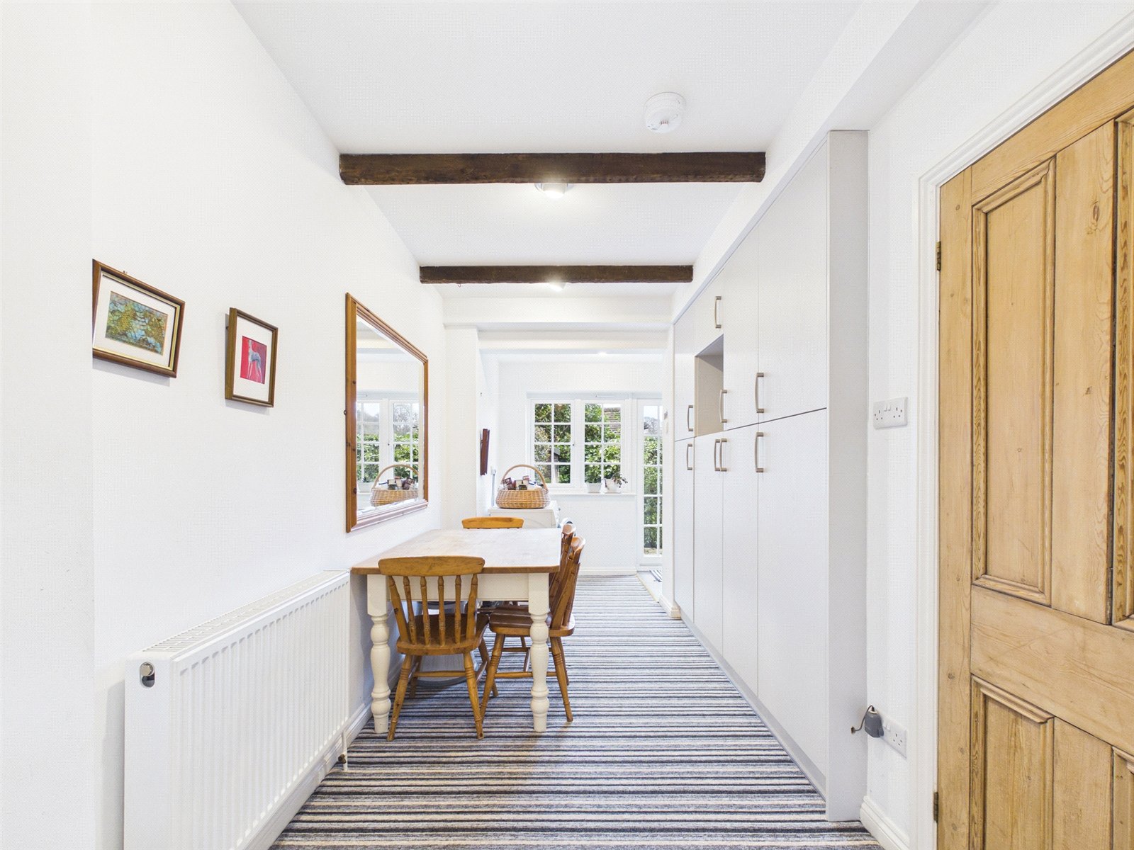 The Kitchen/Breakfast Room which features some exposed brickwork and timber ceiling beams offers a good selection of modern fitted units, the Breakfast Area offers further cupboard storage and ample space for a Dining table and chairs, this in turn opens to a Utility/Shower area.