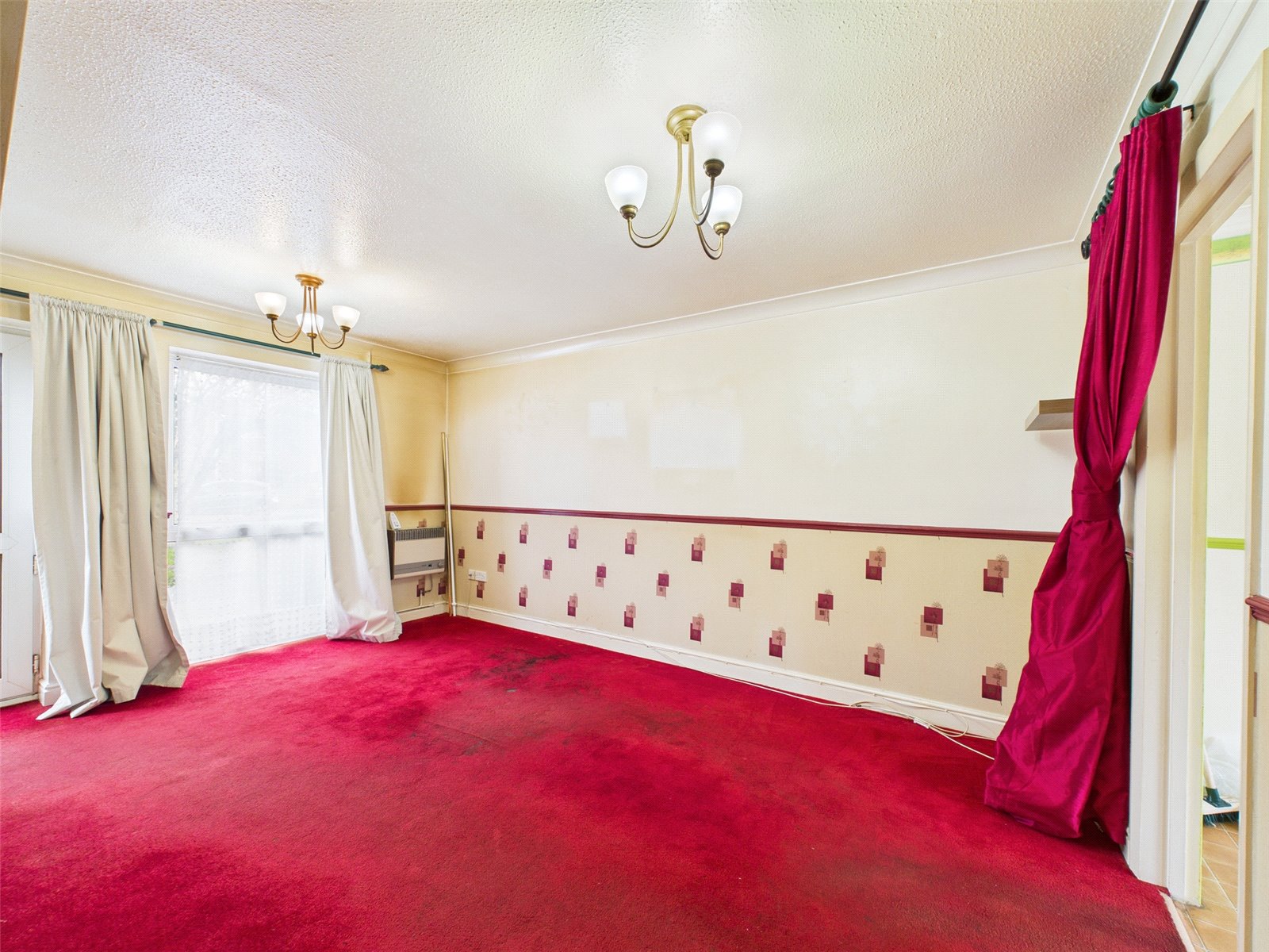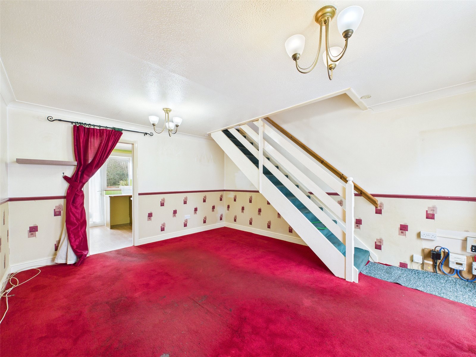 A double glazed entrance door leads to a spacious living room with space under the stairs..