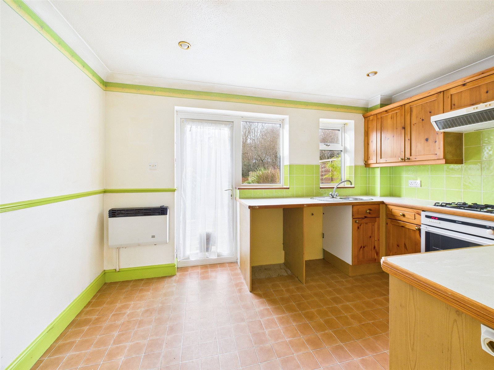 The kitchen/diner has a range of eye and base level units along with space for appliances. Rear door to garden.