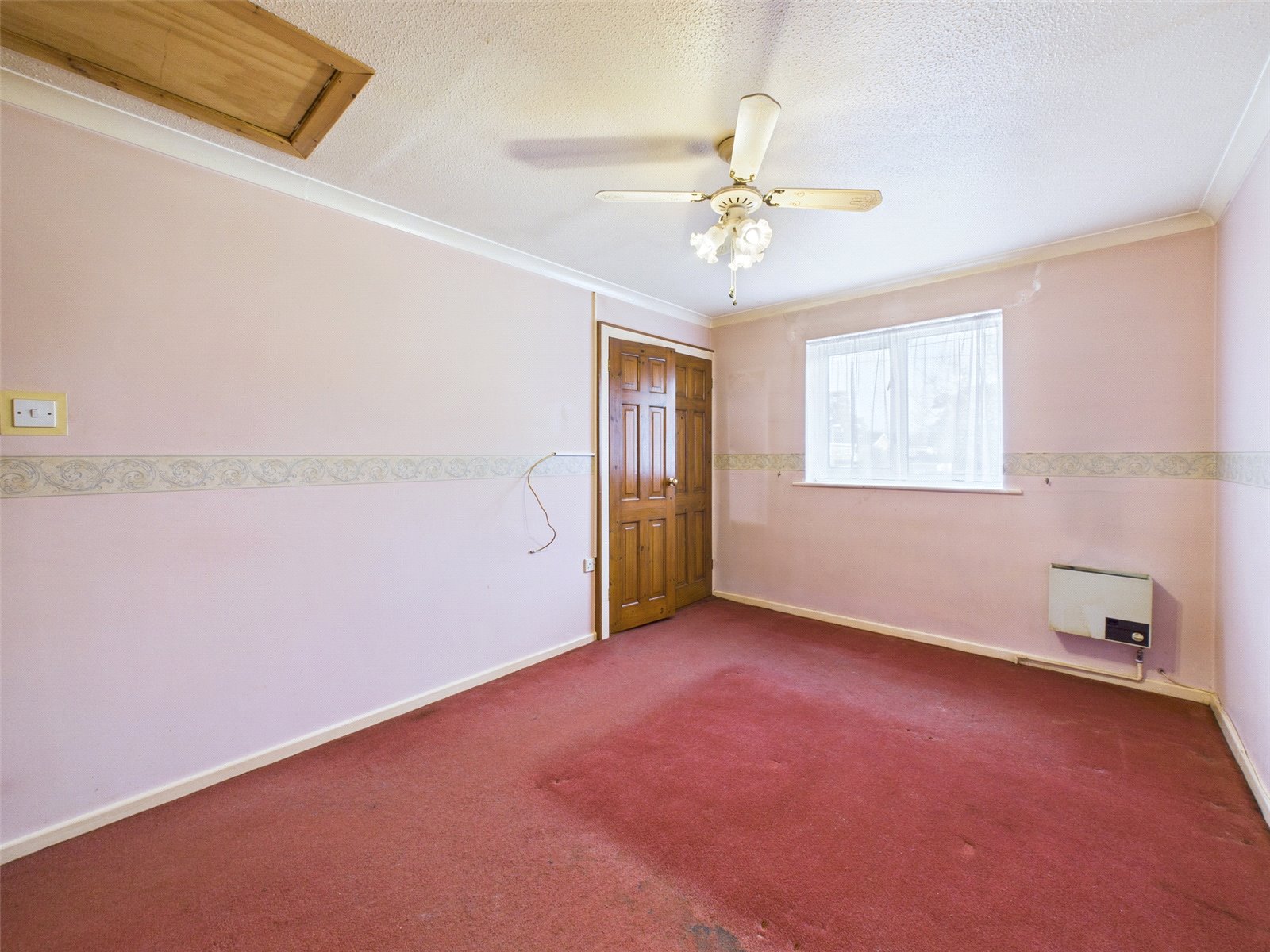 There are 2 well proportioned bedrooms, the main bedroom further benefits from fitted wardrobes and a hatch to roof space.