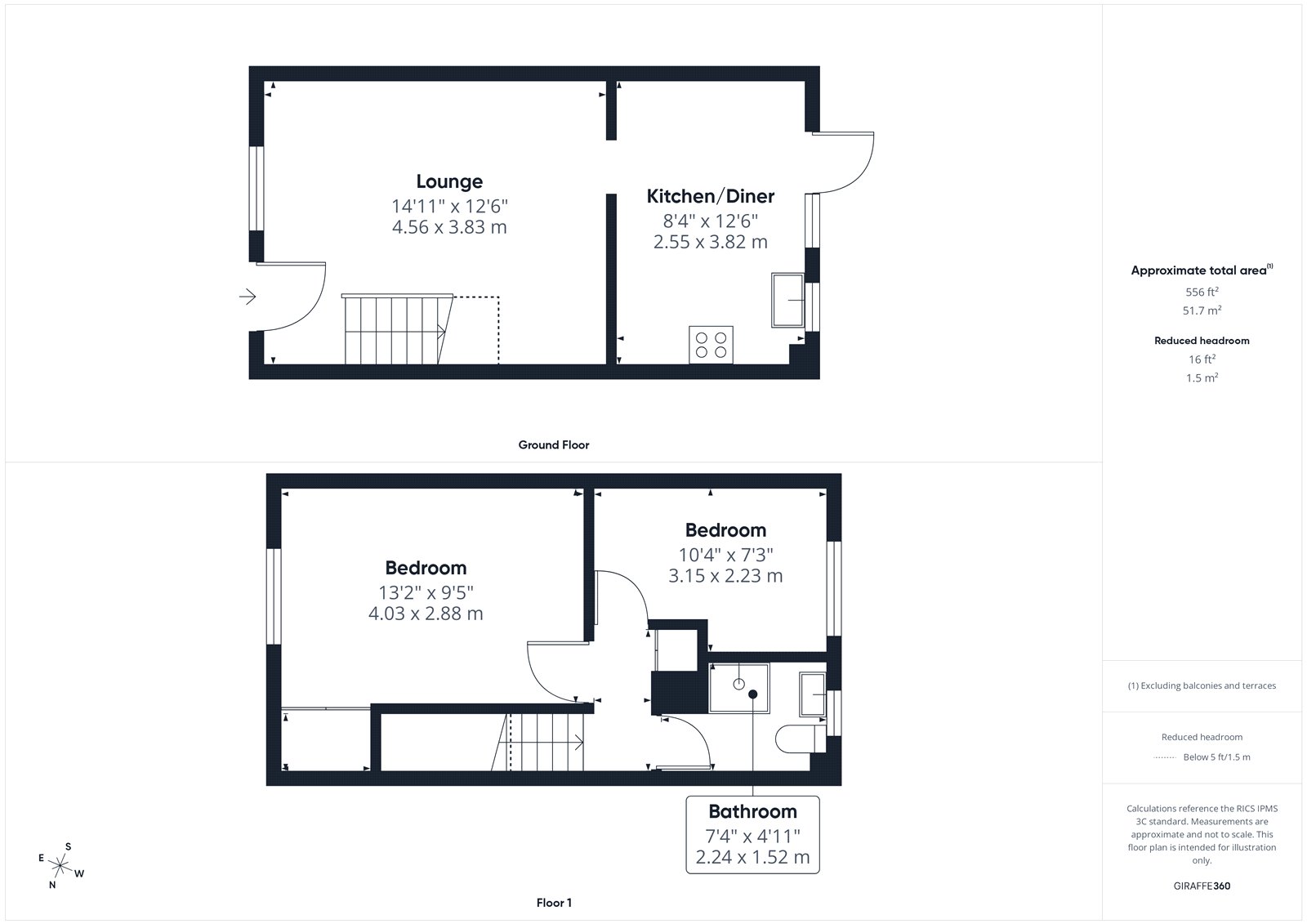 From the lounge/dining room, stairs lead to the first floor landing. Airing/storage cupboard.