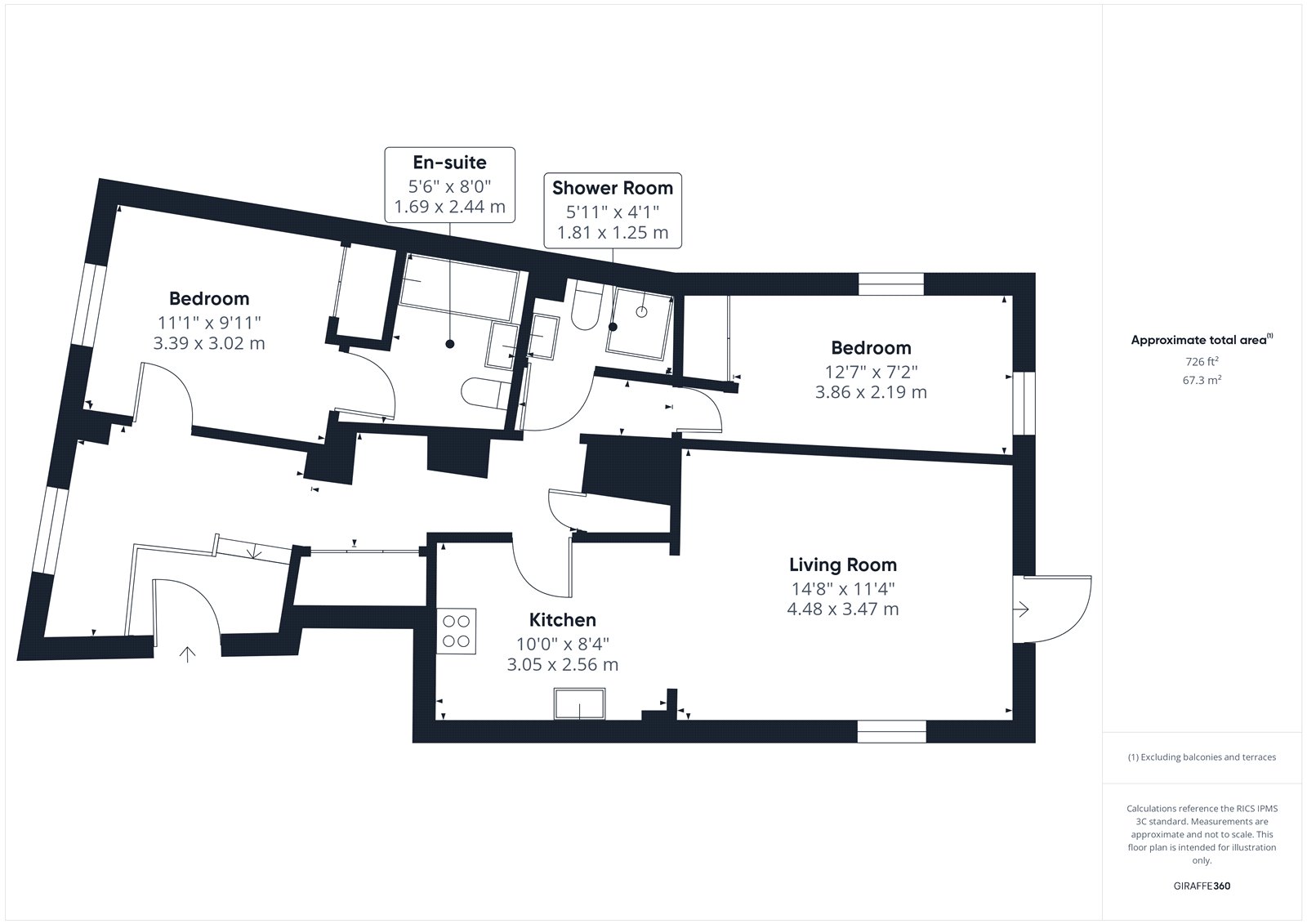 There are two bedrooms, including a principal bedroom with an en-suite shower room. The second bedroom is served by a separate shower room.