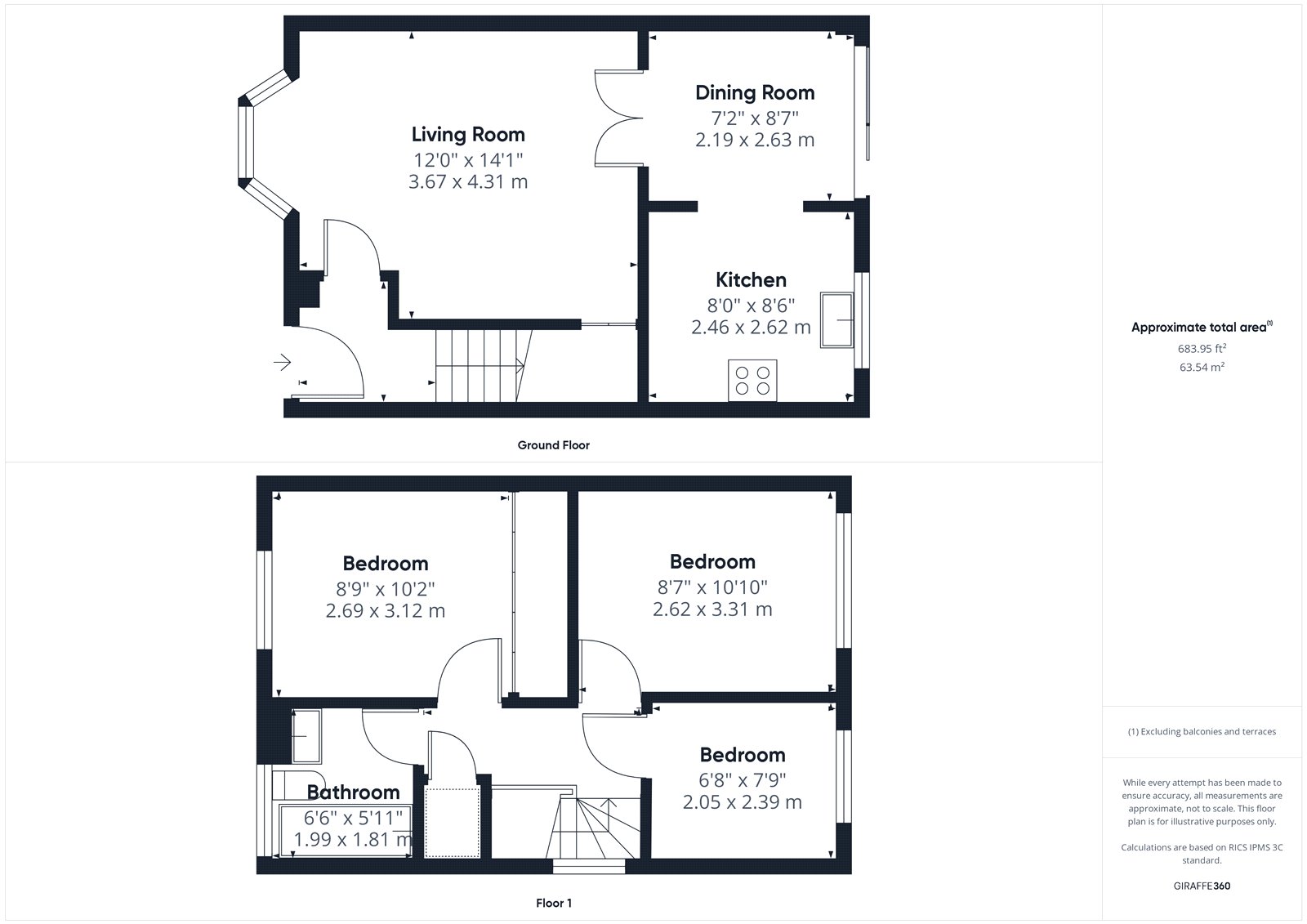 Stairs from the entrance hall lead to the first floor landing. Bedroom one has a window to the front and built in wardrobes. There are two further bedrooms and a bathroom featuring a bath with shower over, wc and basin.
