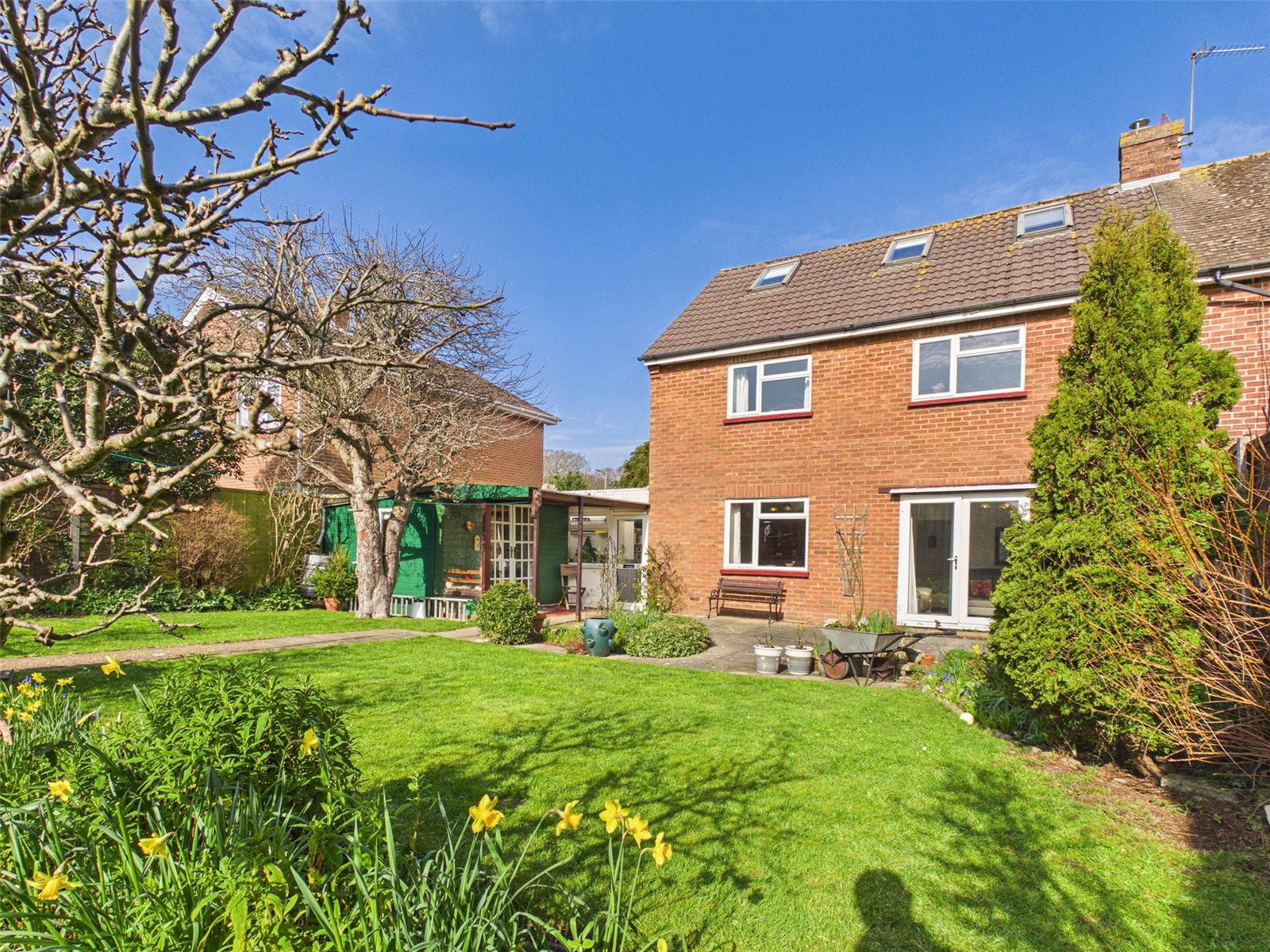 The rear garden is a particular feature. It has a south westerly aspect so enjoys plenty of sunshine all day long. There is an insulated summer house, a garden shed and a larger workshop/shed.