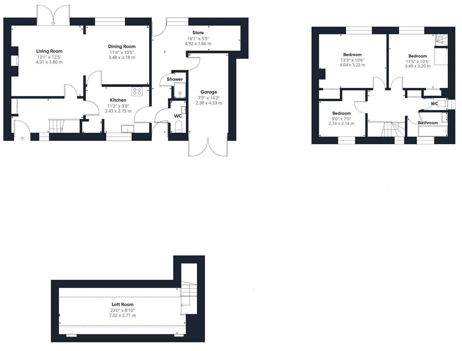 Stairs lead to the second floor loft room which is 23ft in length, has three Velux windows and access to the eaves for storage. The room has been used as a bedroom and hobbies room over the years. It is a bright and well insulated room making it a valuable and very useful part of the accommodation.