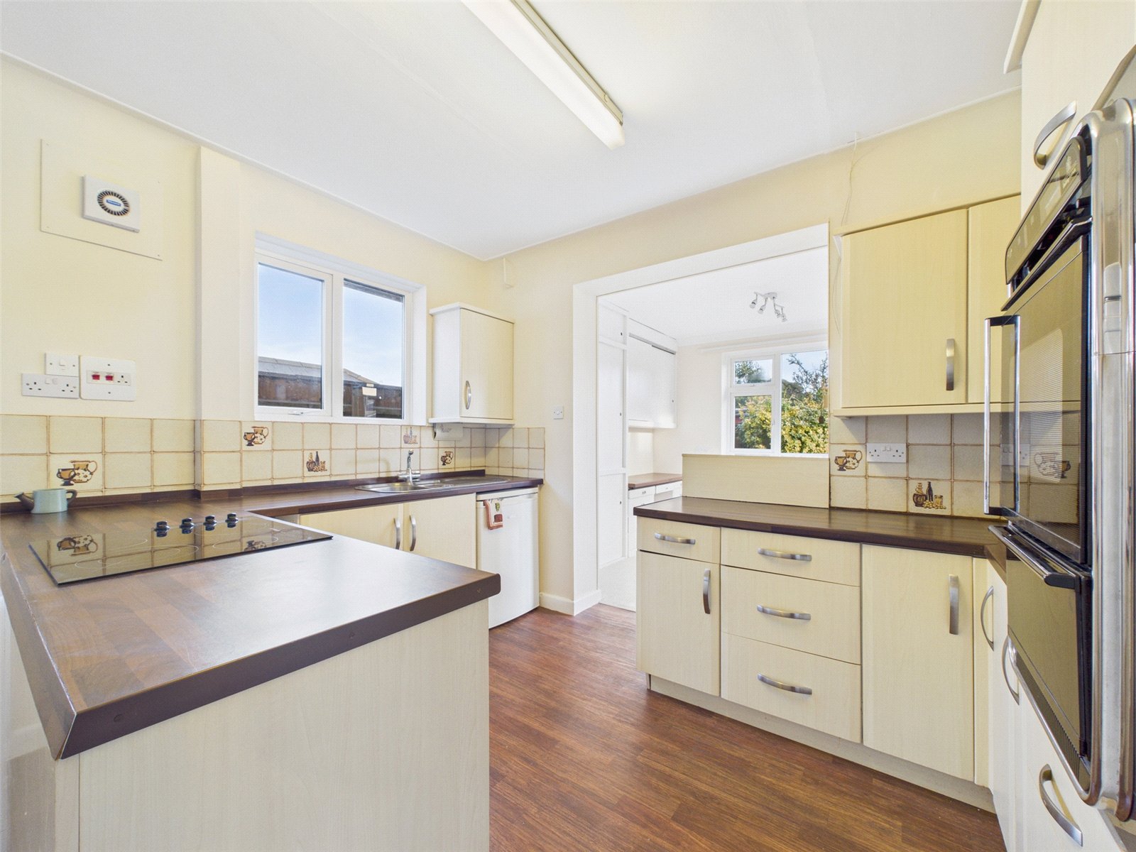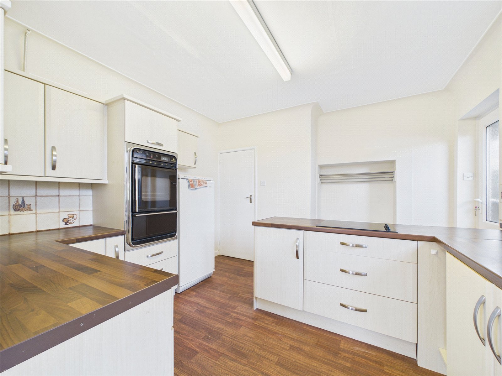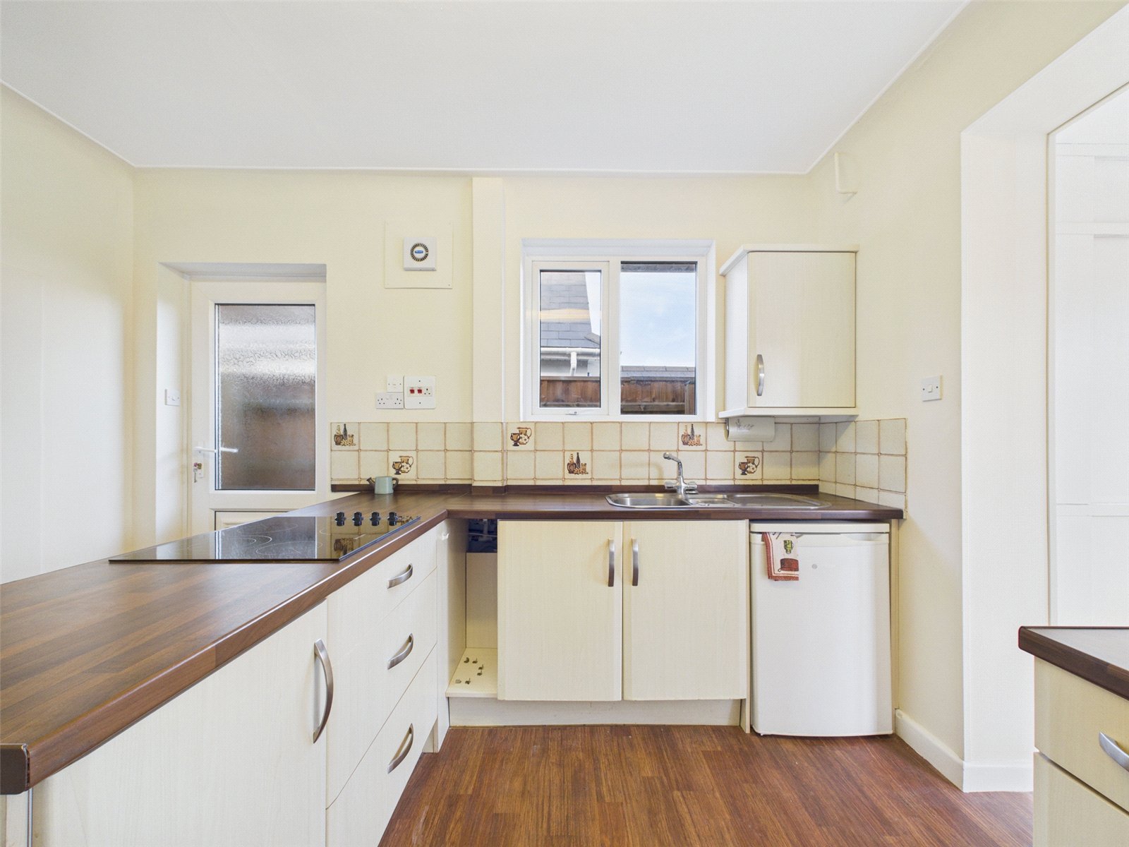 The kitchen offers a good range of eye and base level kitchen units and has a door leading out to the side of property. There is a fitted eye level oven and an electric hob with space provided for a washing machine and fridge/freezer.