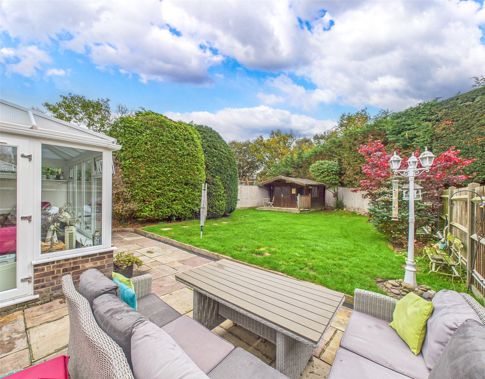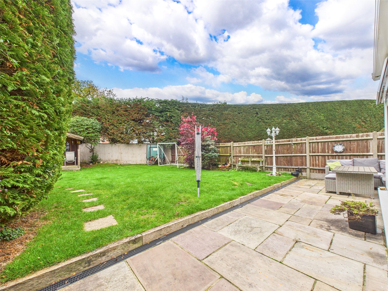 A large Southerly aspect rear Garden which benefits from a good degree of seclusion enjoys a paved patio and a vast area of lawn with a Summerhouse to the far end.