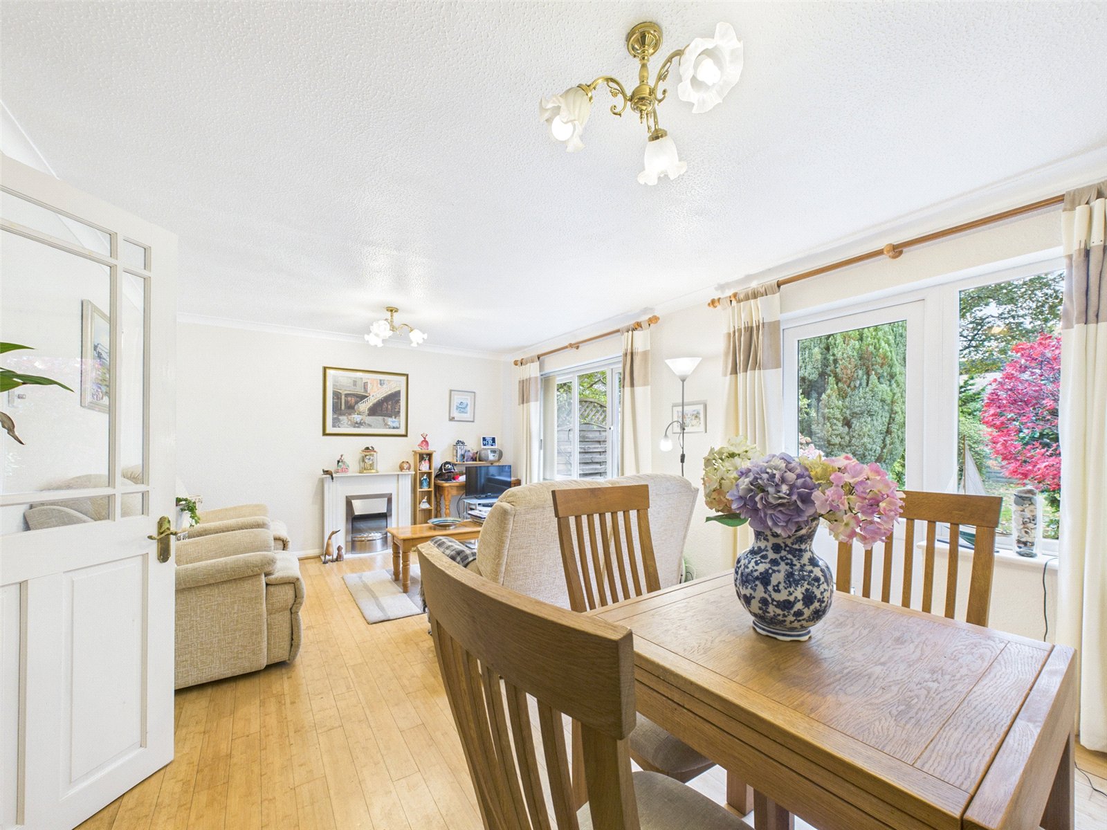 The Lounge/Dining Room is situated to the rear of the property with an attractive outlook over the rear Garden with a door providing external access, there is a feature fireplace and laminate flooring.