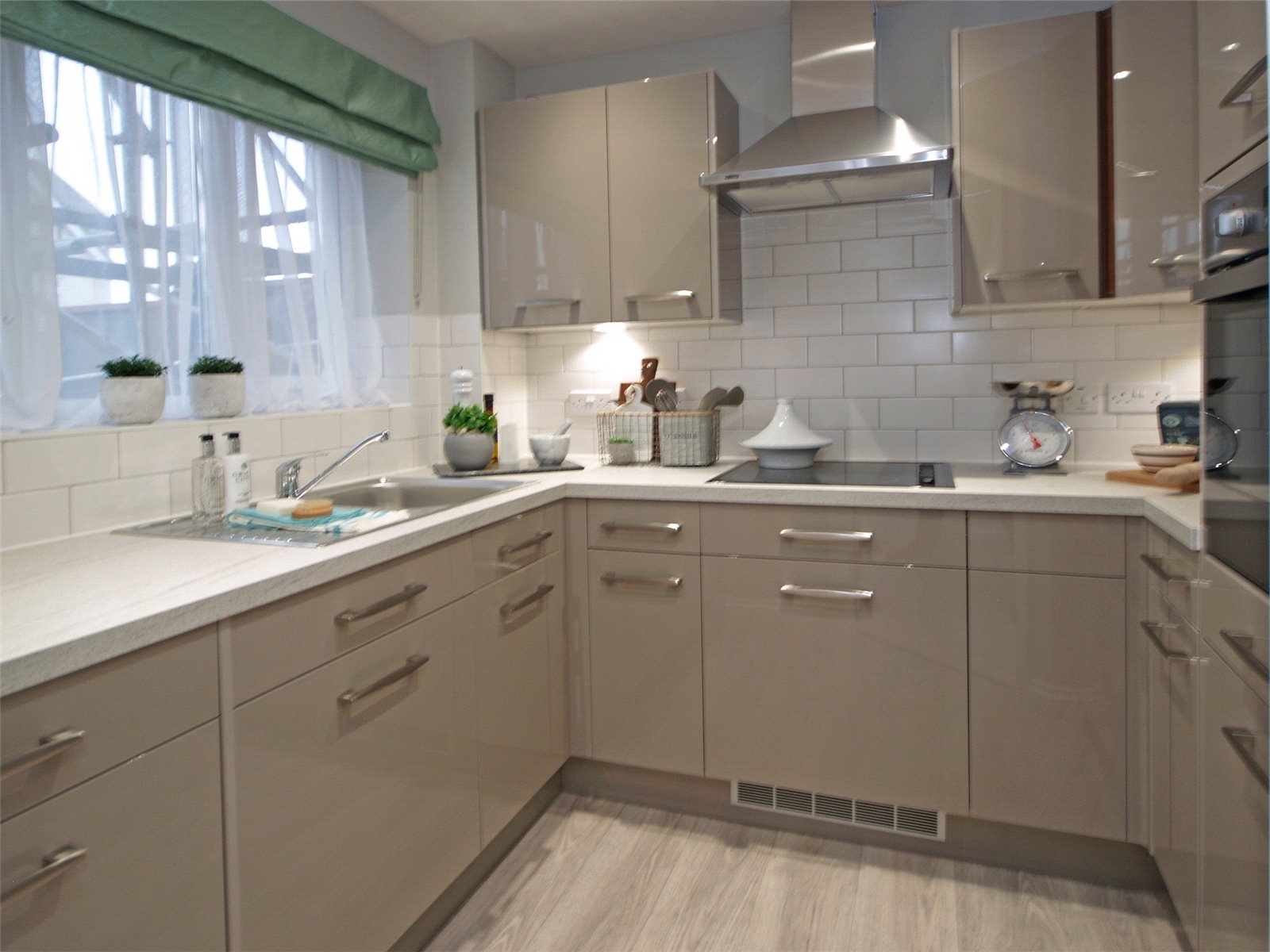 The living room / diner is a good size and very nice and bright. It has an attractive fireplace centre piece. A Juliette balcony overlooks communal gardens at the rear of the development.