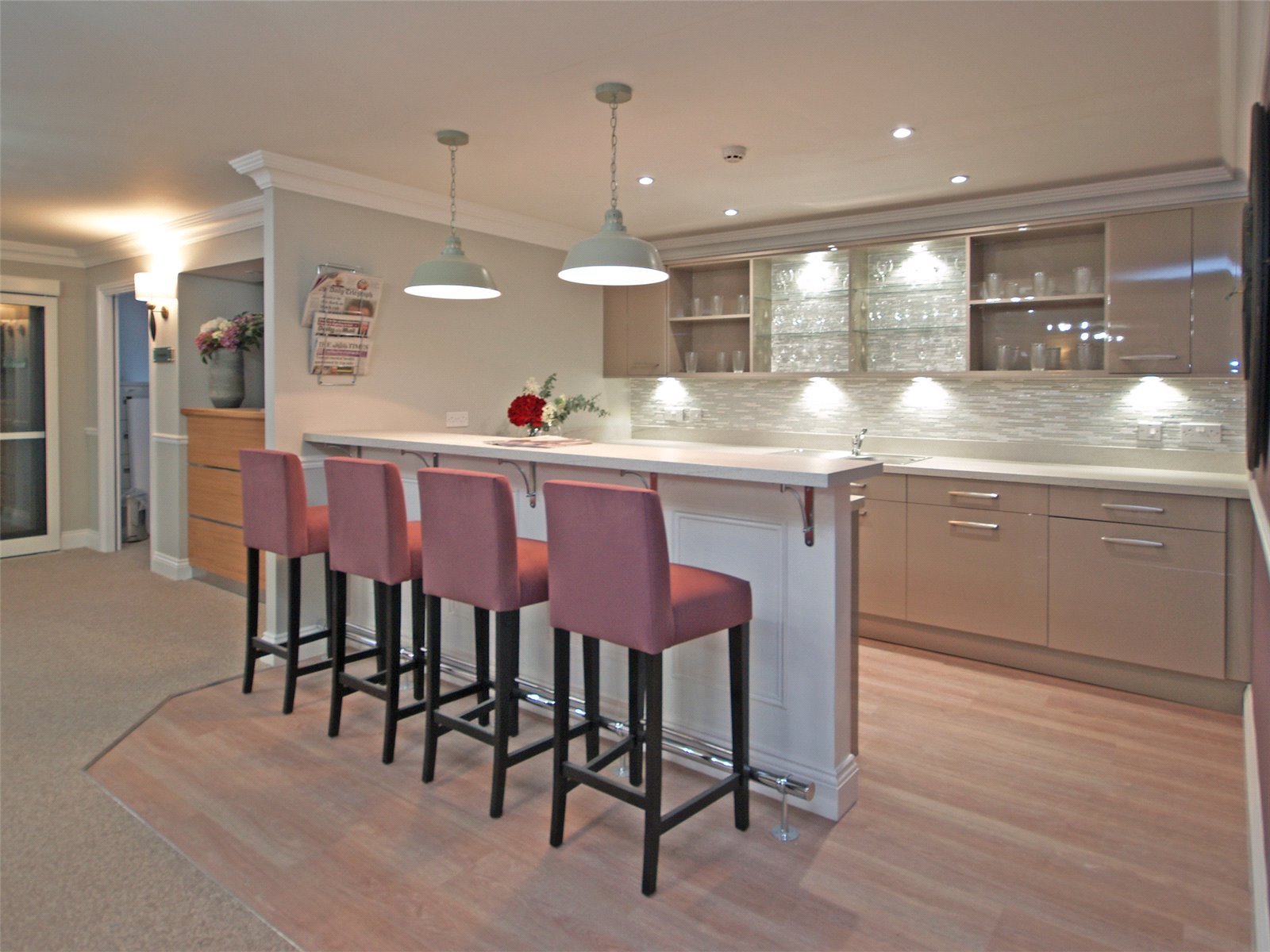 The kitchen is fully fitted and features a range of very pleasant light grey gloss eye and base level units finished with a white worktop. Integrated appliances include oven, hob, fridge, freezer and washer dryer. A window provides lots of natural light.