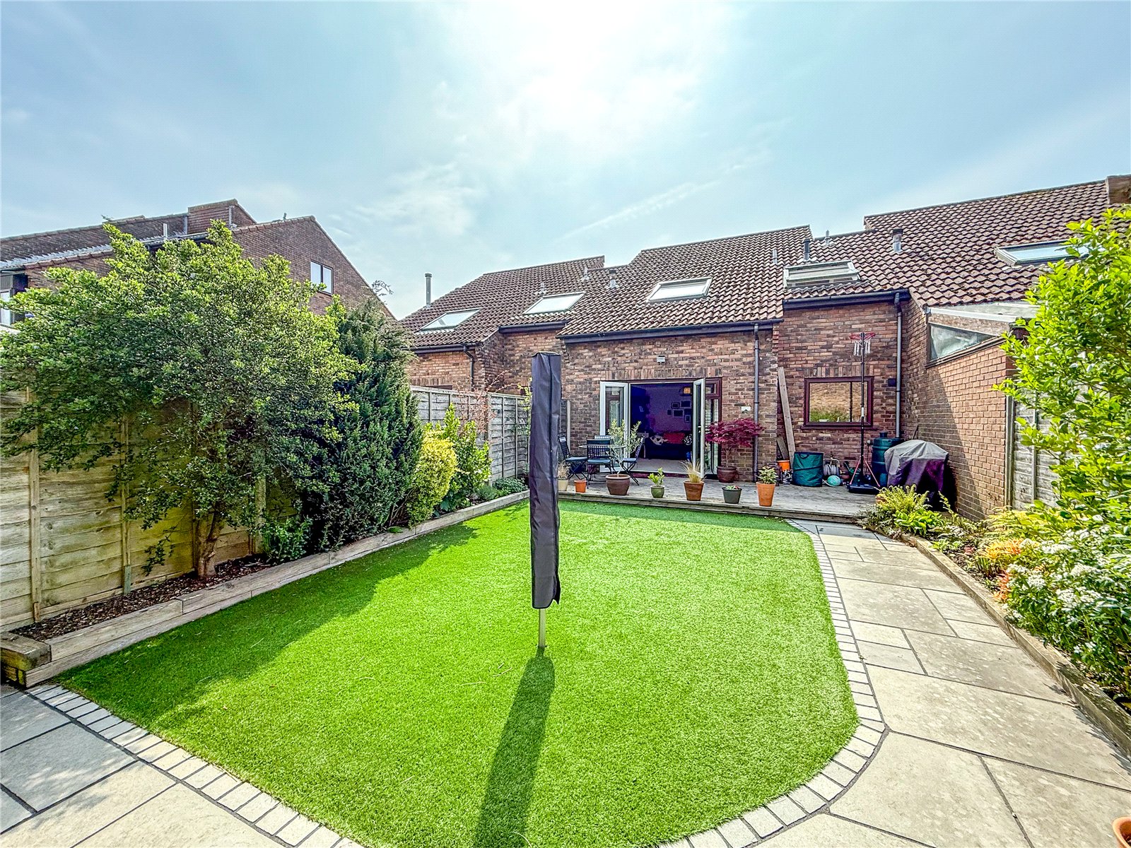 The front garden is laid to lawn with a path leading to the front door. The rear garden features sections of decking, patio and artificial lawn. There are also some attractive borders.