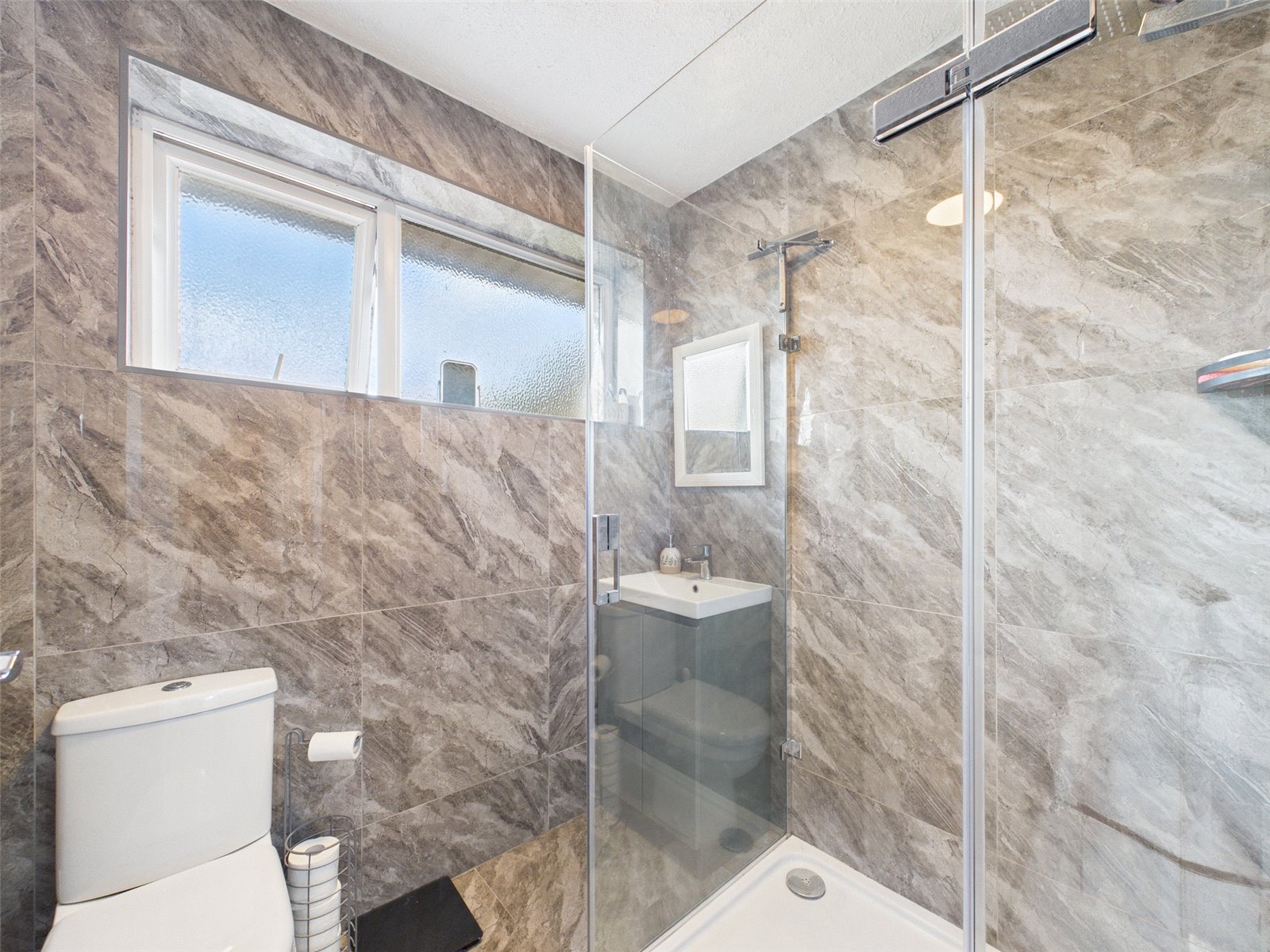 On the first floor, the property benefits from three bedrooms, including two well-sized doubles. The accommodation is completed by a family shower room which has been fully tiled.