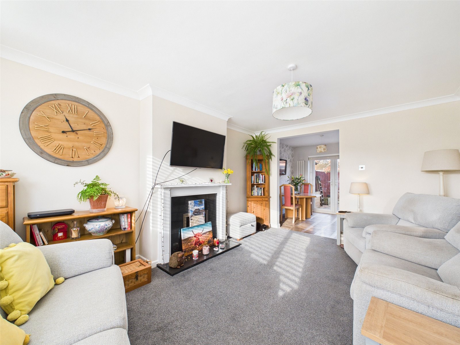 The front door leads to a welcoming entrance hallway leading through to a generous living room, providing ample space for both relaxation and entertaining. To the rear of the property is a well-proportioned kitchen/diner, offering plenty of room for dining furniture and everyday family living. The kitchen features a range of attractive eye and base level units with a range of integrated appliances.