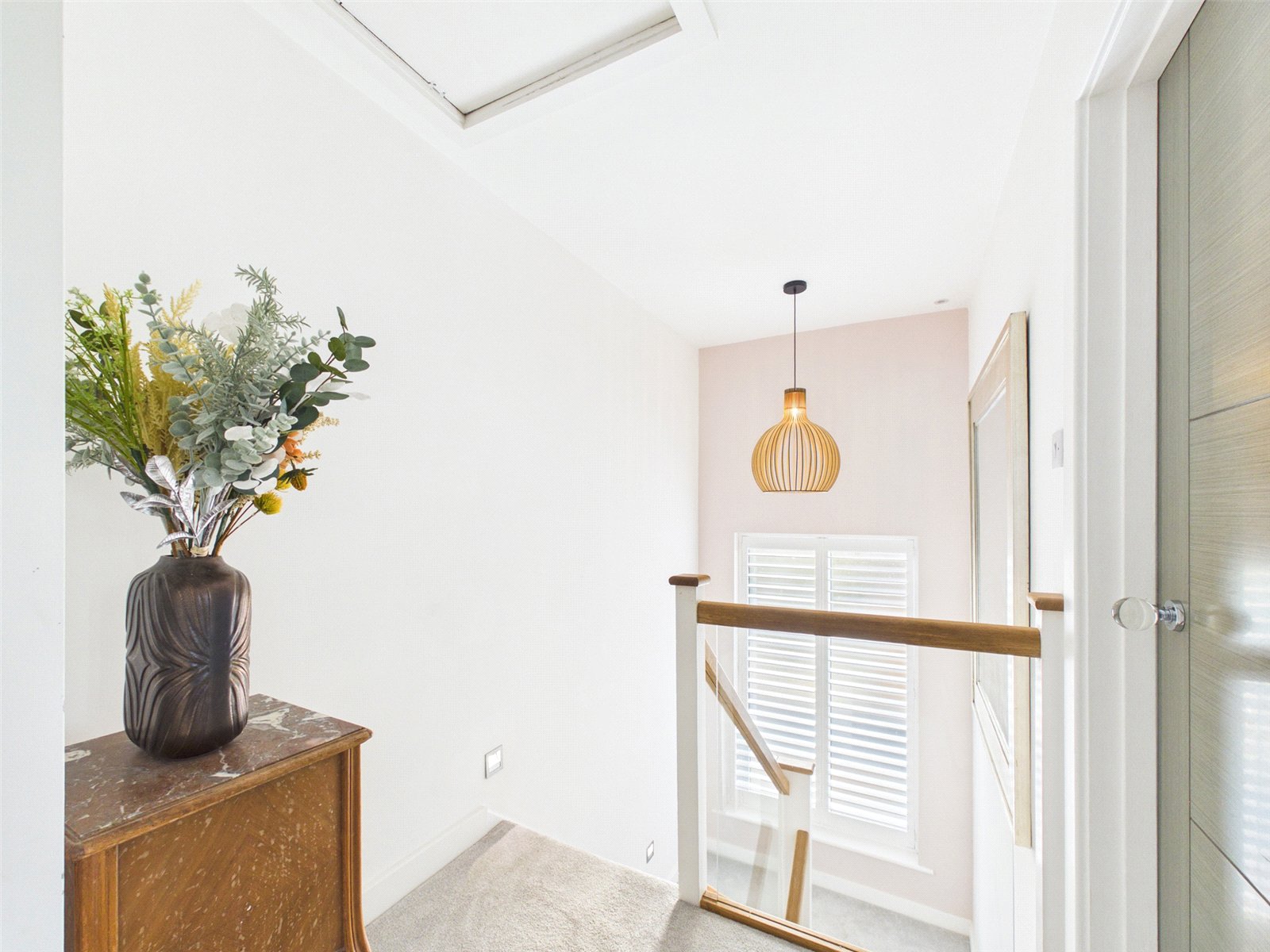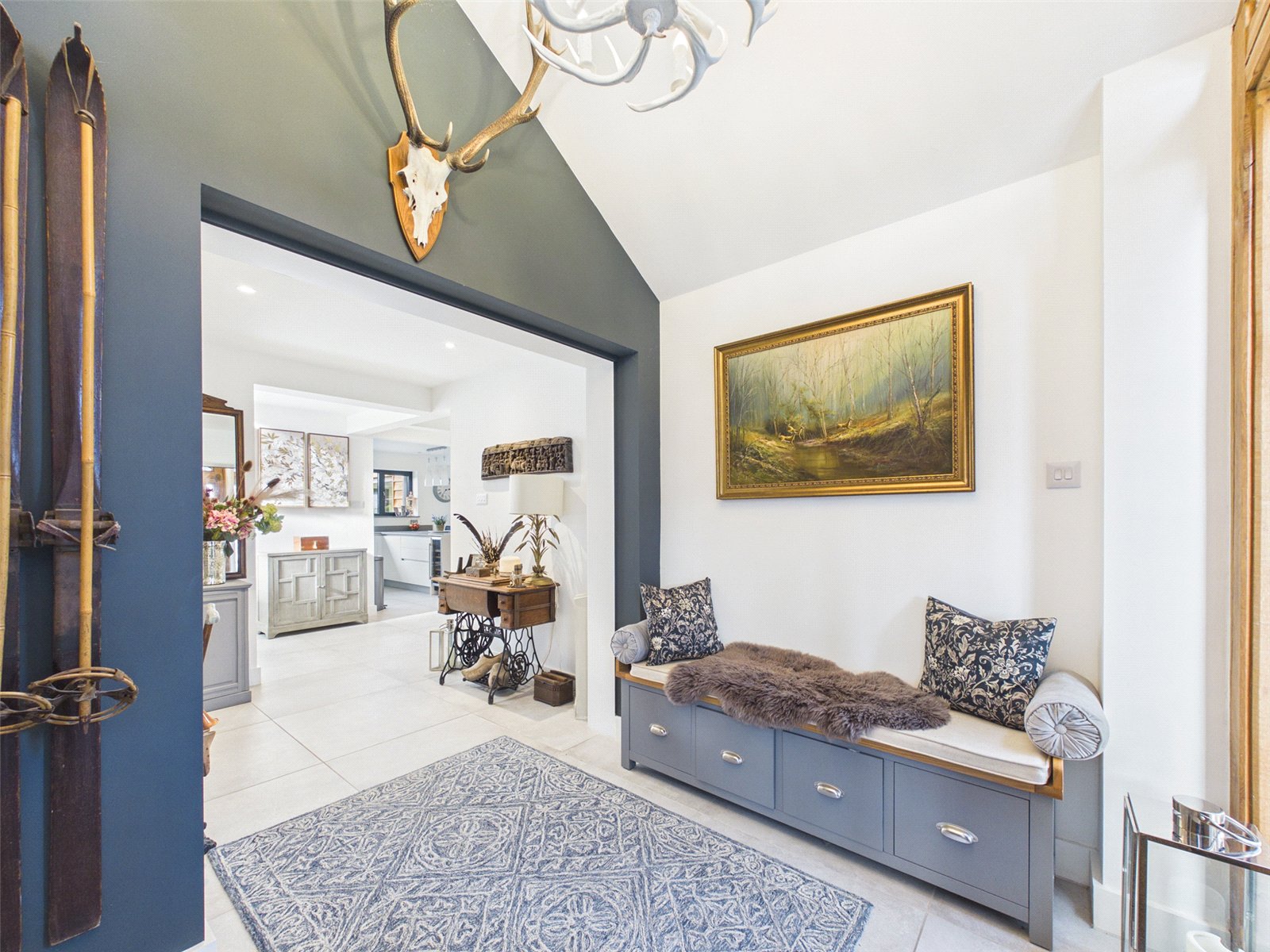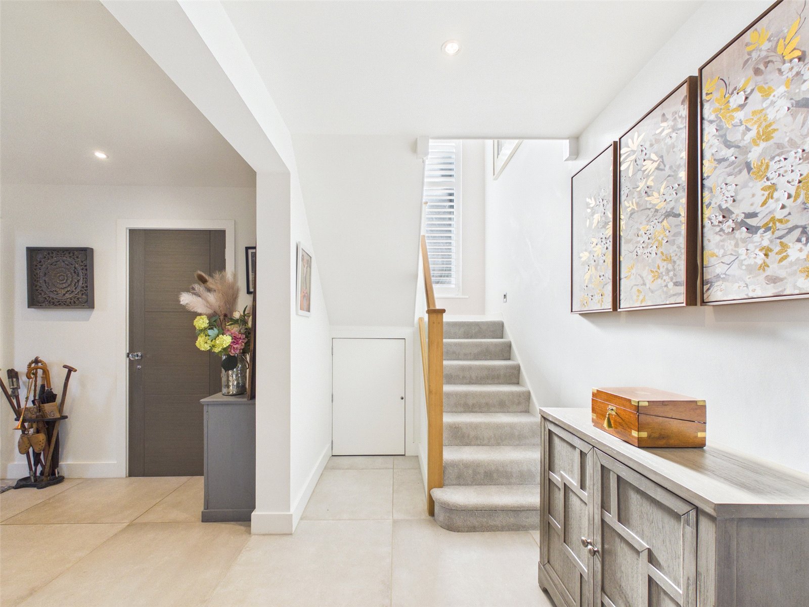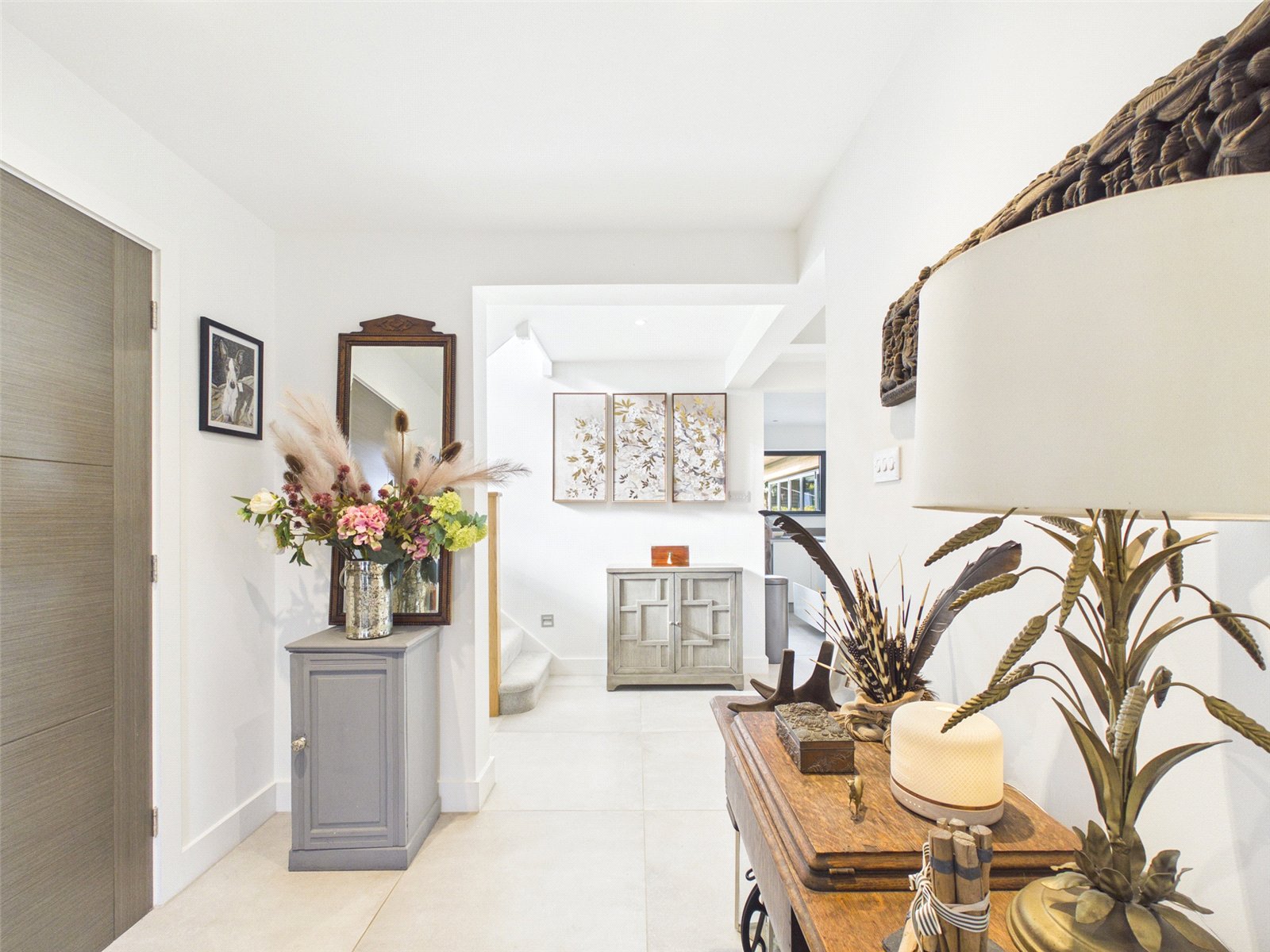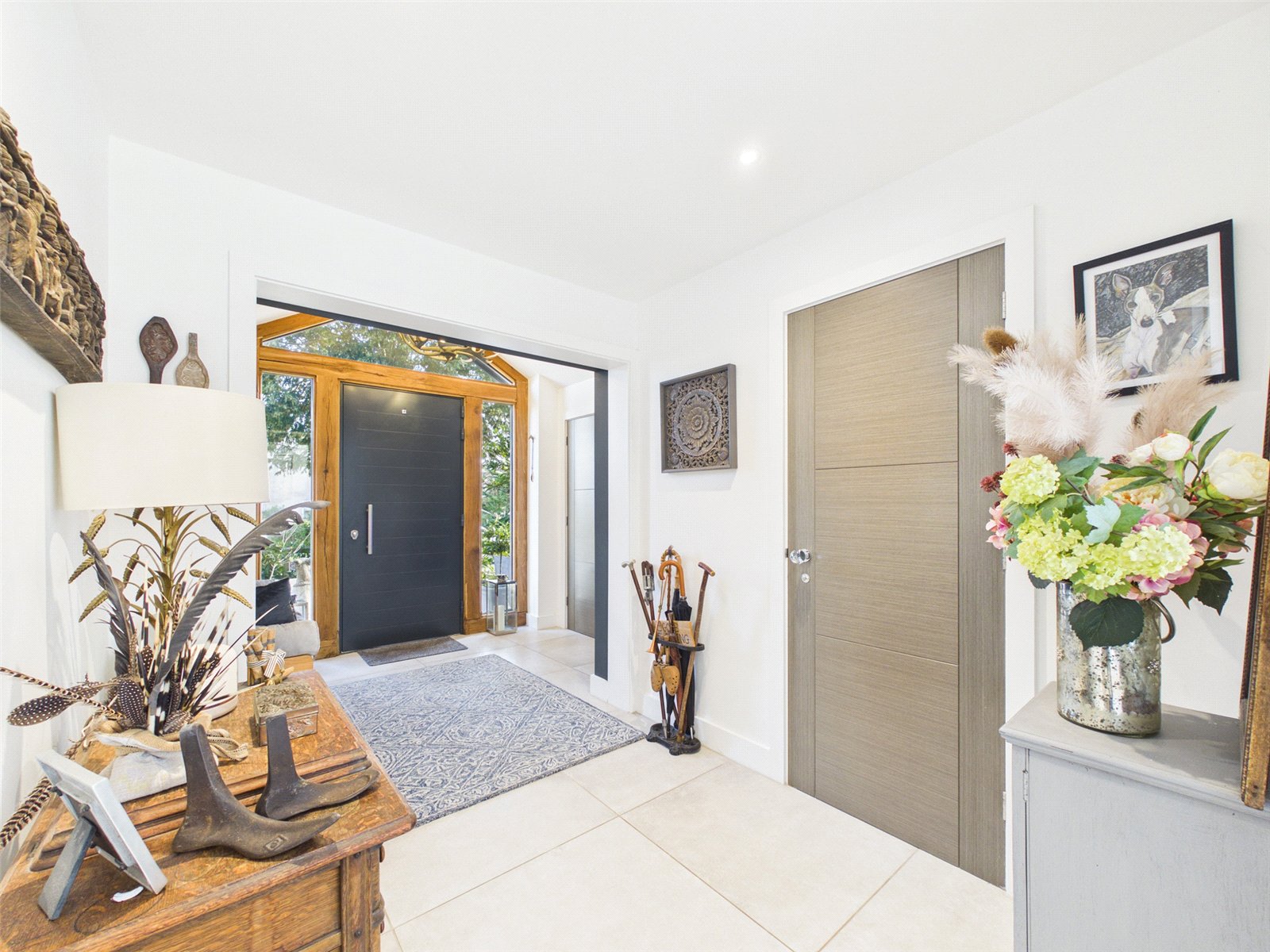 A composite front door set within an Oak frame opens to a delightful, spacious Entrance Hall with inset downlighters, a useful storage cupboard and tiled flooring.