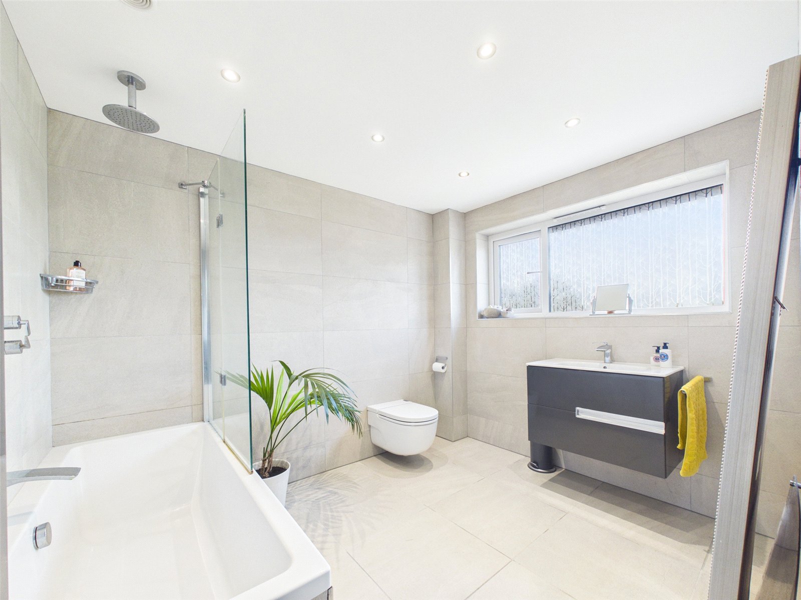 The high quality Family Bathroom offers a modern matching white suite incorporating a bath with shower fitment over.