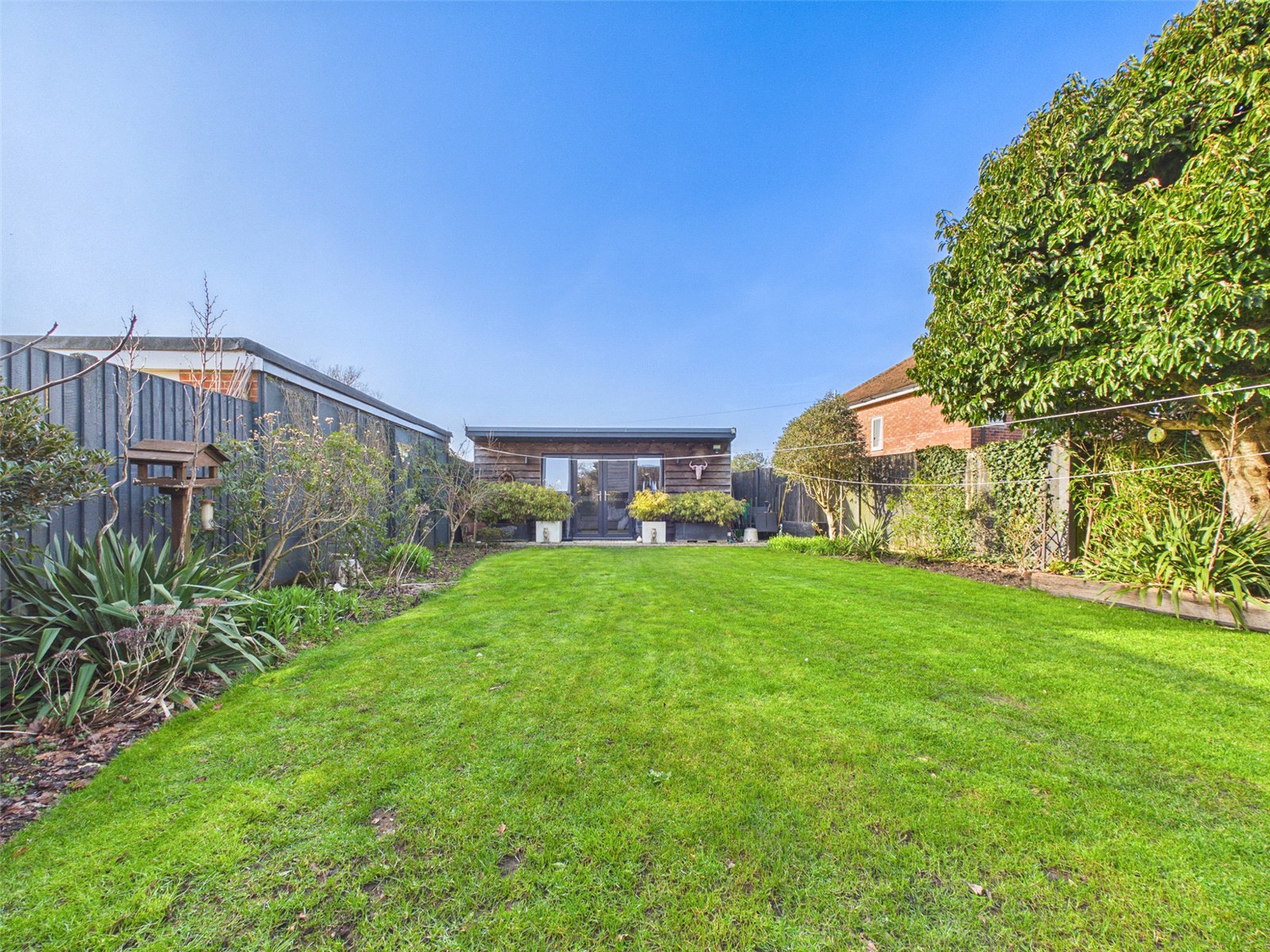 The good size rear Garden enjoys a large paved Patio and an area of lawn with well stocked borders. To the far end is a timber Garden building with a Shower Room which would make for an ideal Gym or office.