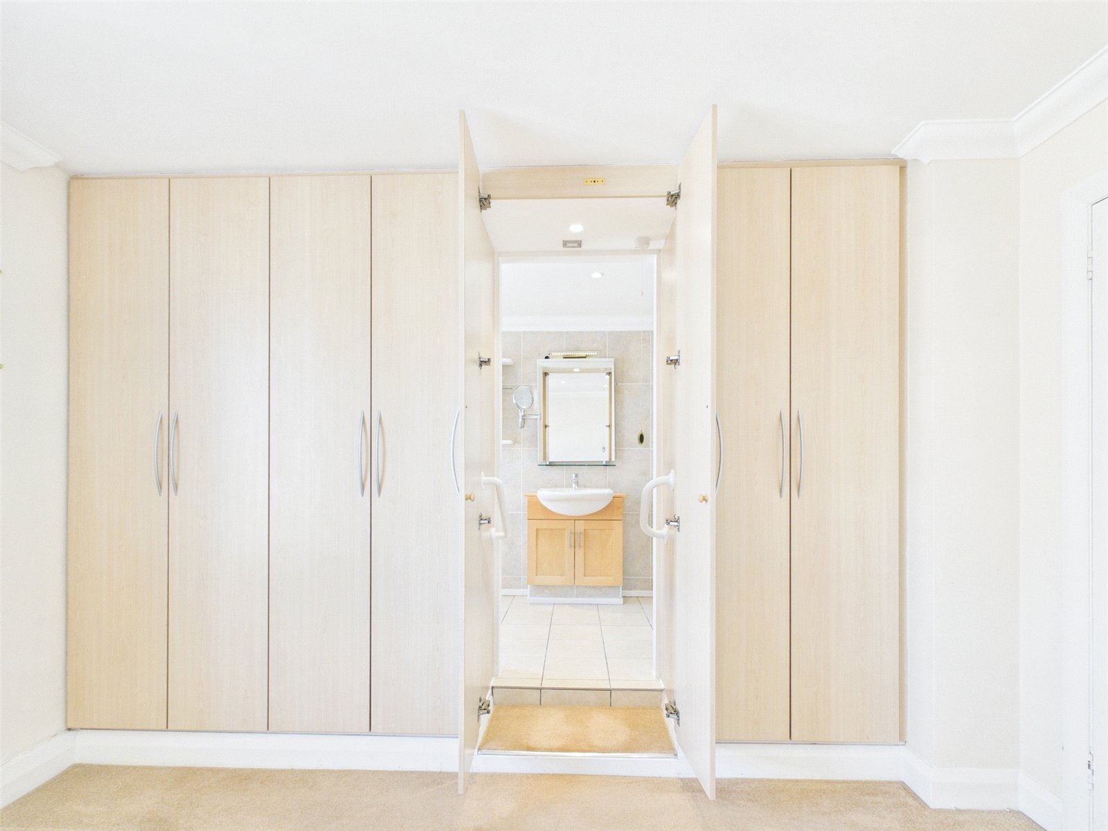 The master bedroom can be found at the rear of the apartment and is a good-sized double room, boasting plenty of built in storage space. The en-suite comprises of a large shower cubicle, hand wash basin with vanity unit below, a low-level flush W/C and heated towel rail.