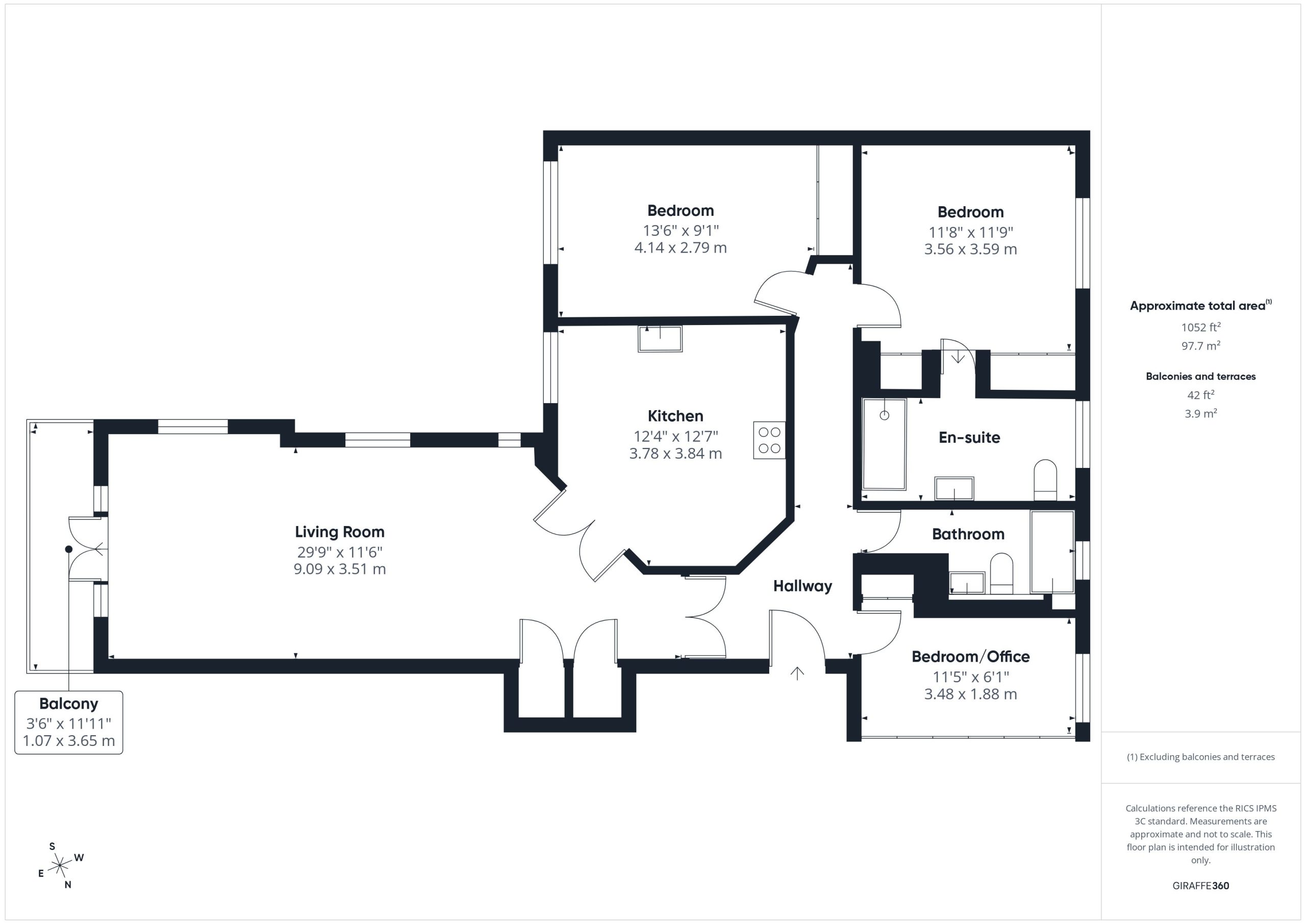 The subject apartment is set on the second floor and is served by a spacious hallway allowing access to all principal rooms, bar the kitchen which is accessed off the living room.