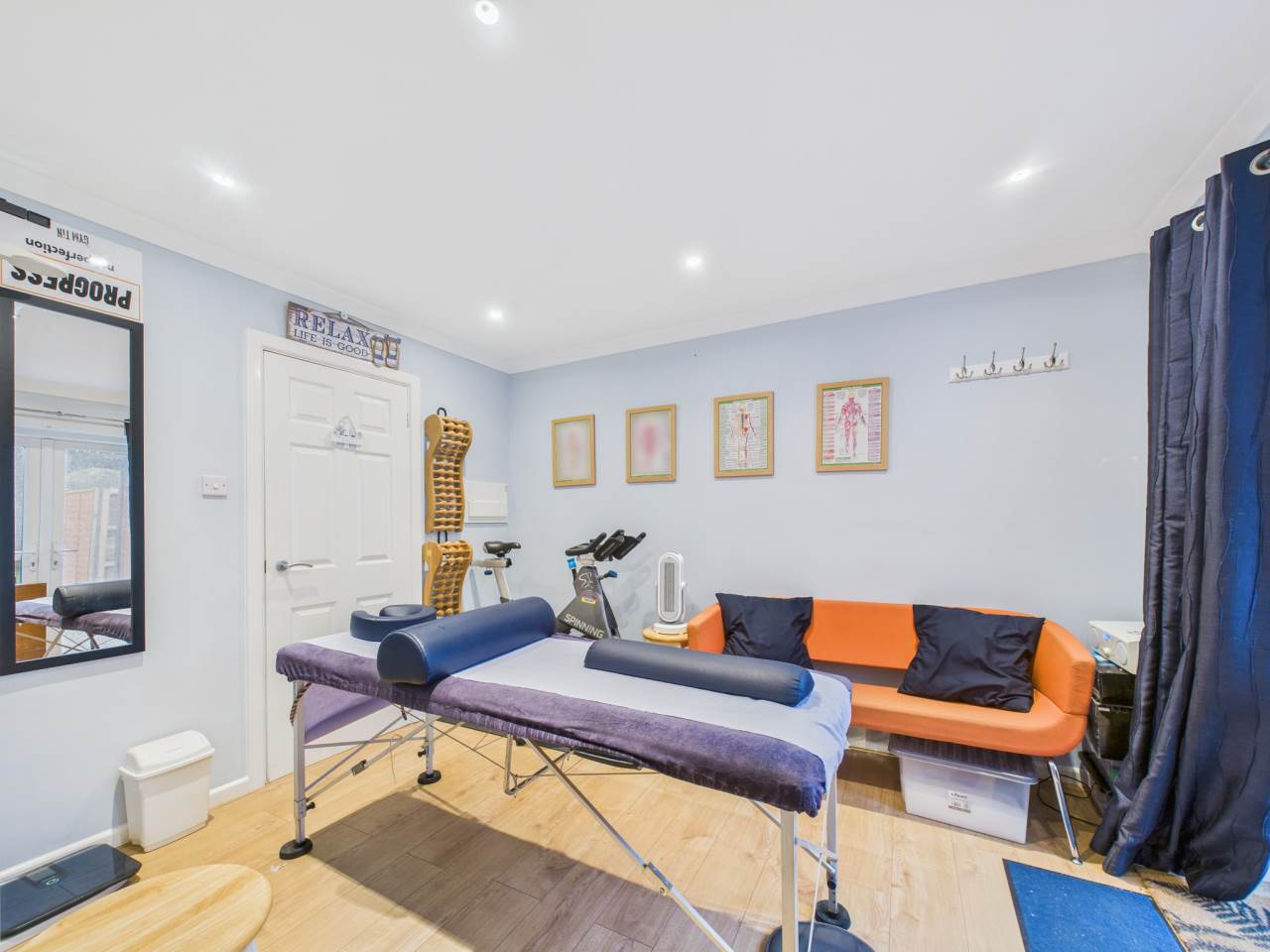 The accommodation is arranged over two levels and comprises four well-proportioned double bedrooms, two of which benefit en-suite shower rooms. The family bathroom is modern and benefits a rainfall shower above bath, offering versatility and comfort for family living or professional tenants seeking space and quality.