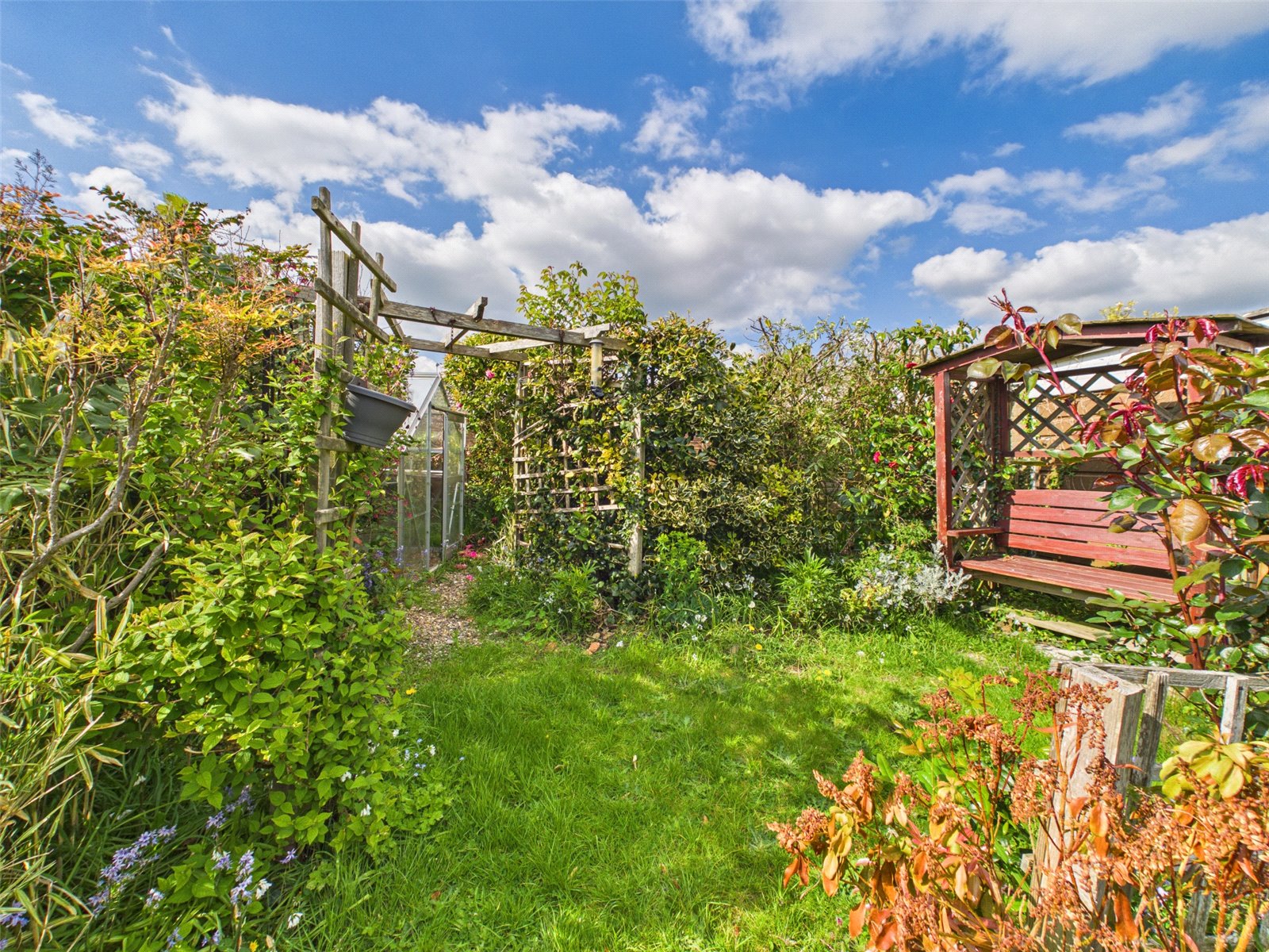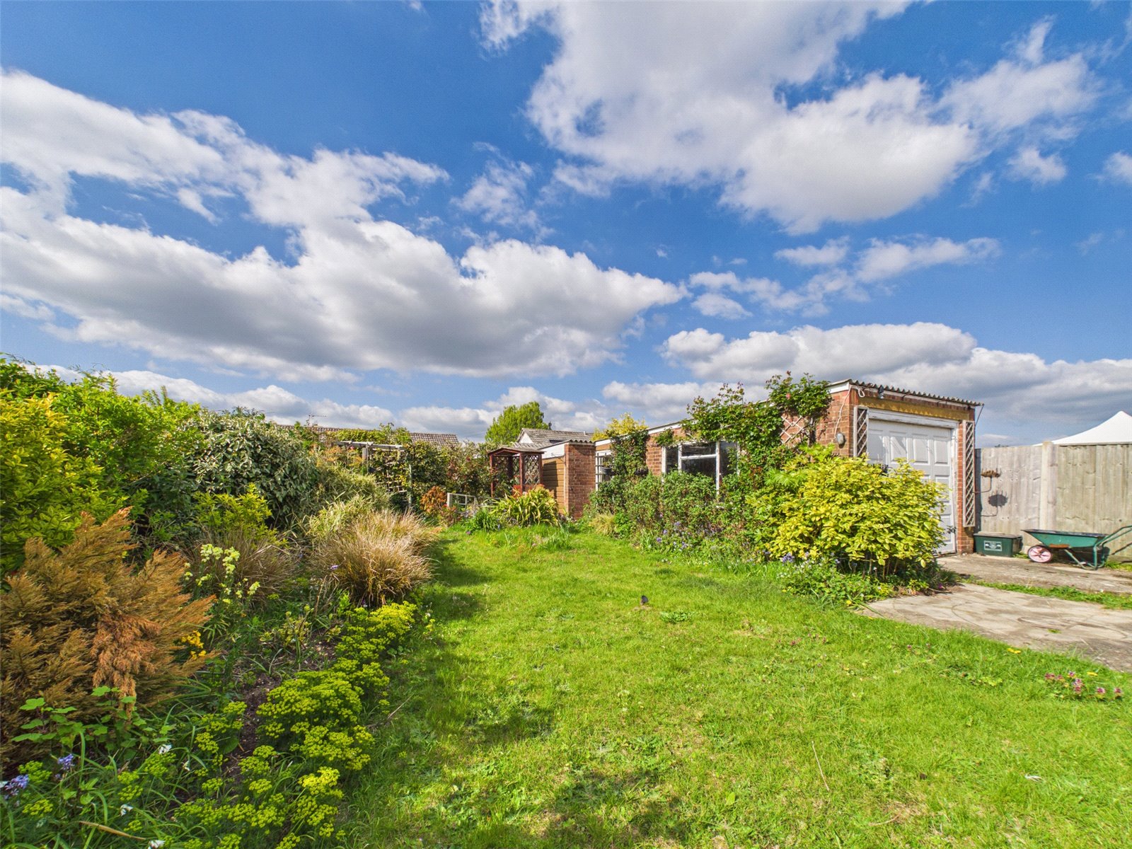 The rear garden is a deceptively large space with an area of patio and the rest predominantly laid to lawn with shrub borders.
