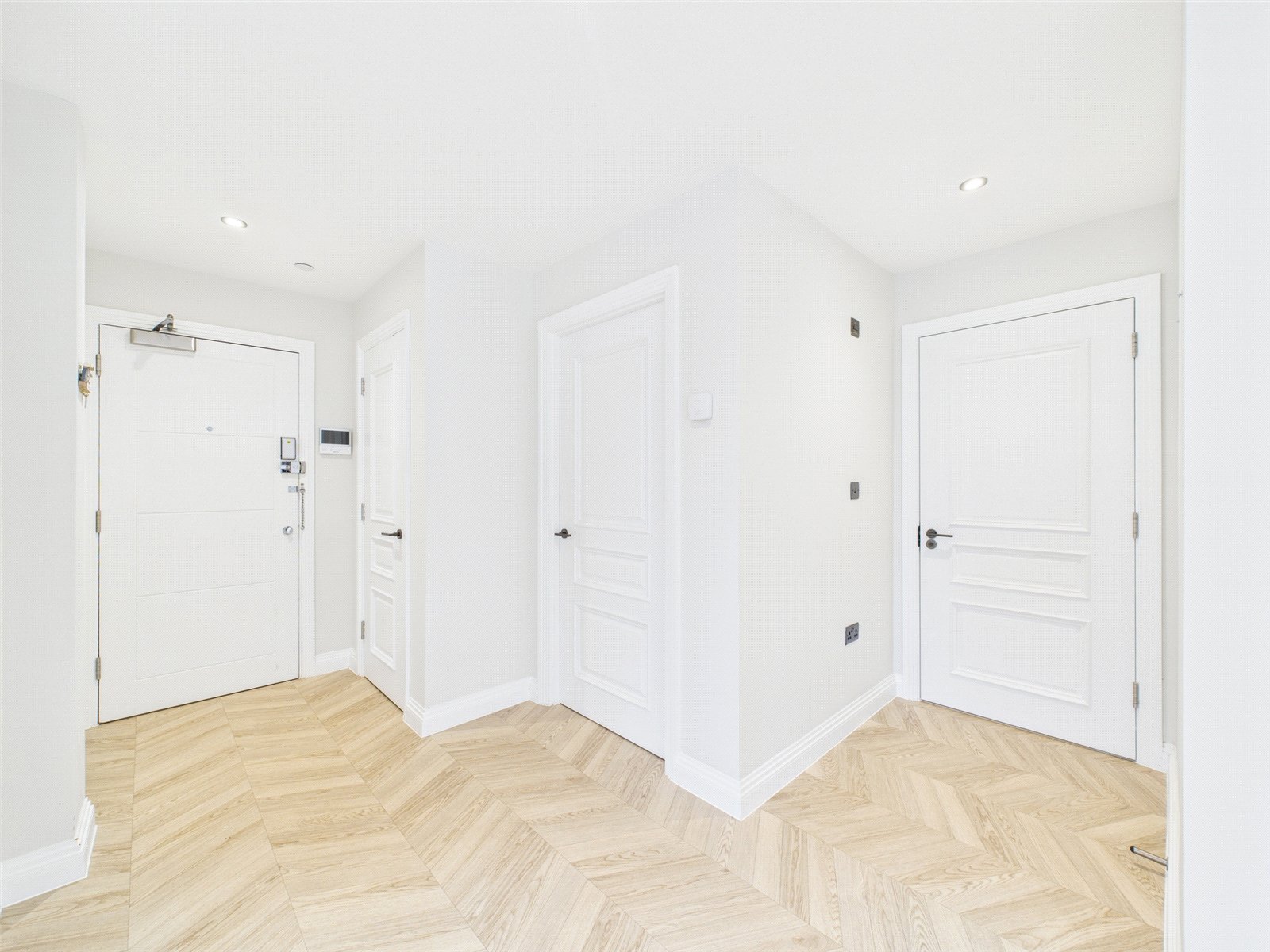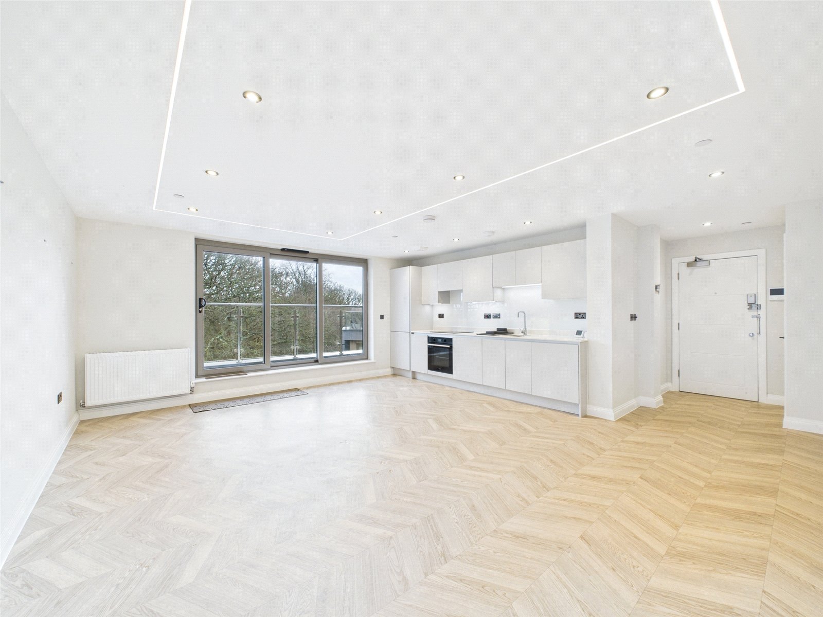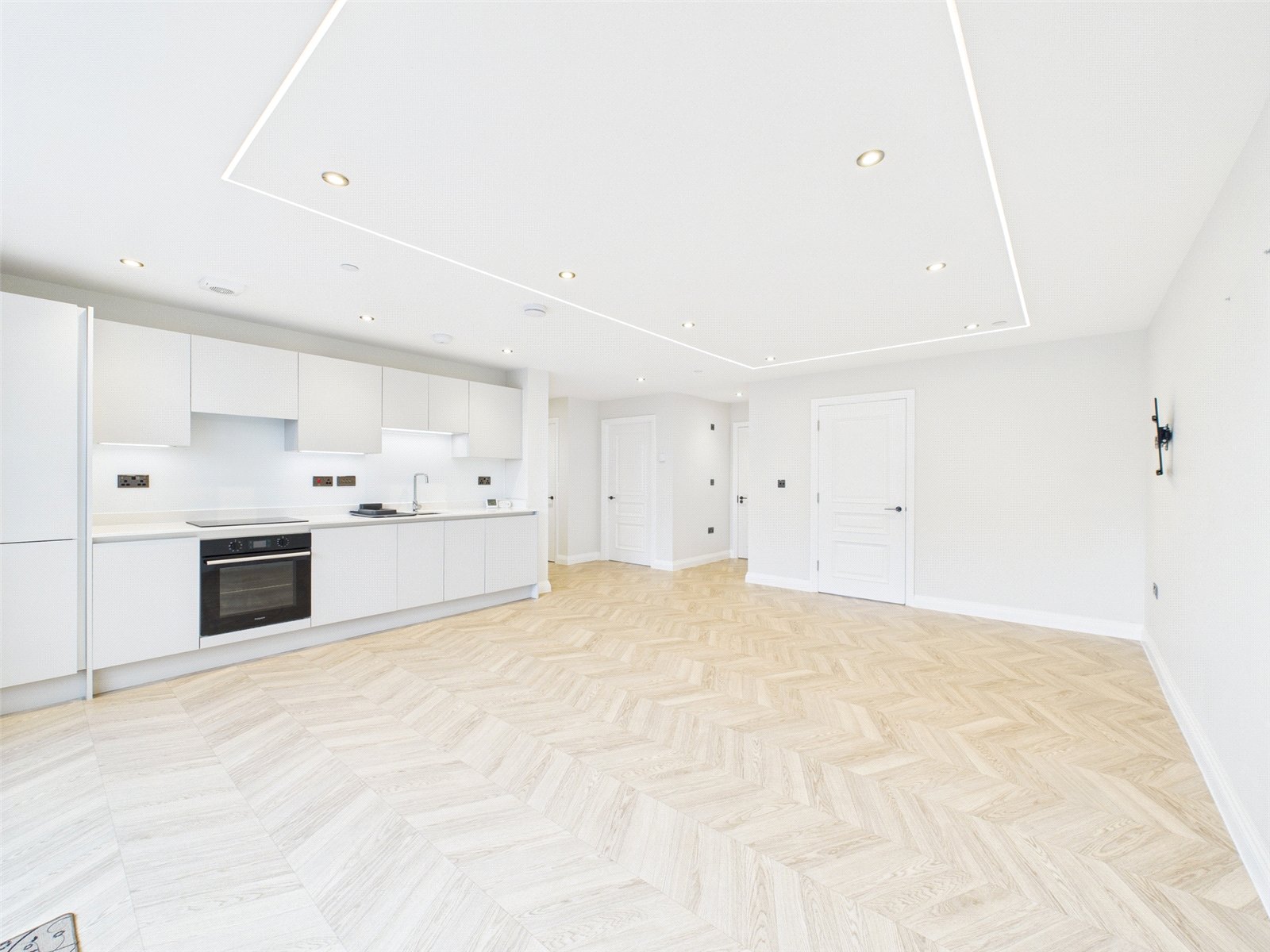 There is a communal entrance to the front of the building. Stairs or lift lead to the top floor where the apartment can be found. The front door leads into the entrance area where there is a useful storage cupboard. There is a generous open plan living area. The kitchen features a range of base and eye level units with some integral appliances. There are two double bedrooms which both have built in storage. The bathroom features a wc, basin and bath with shower over.