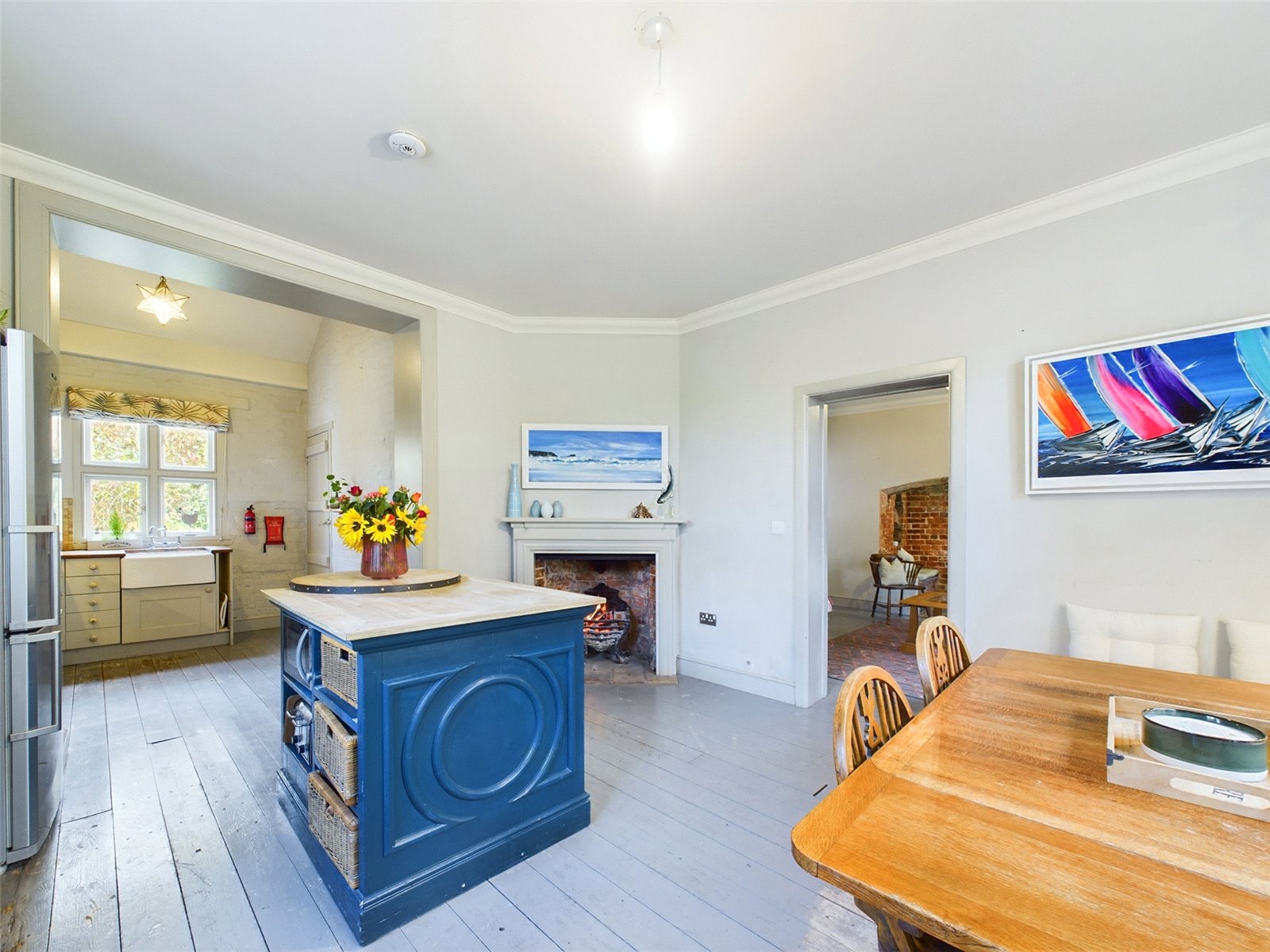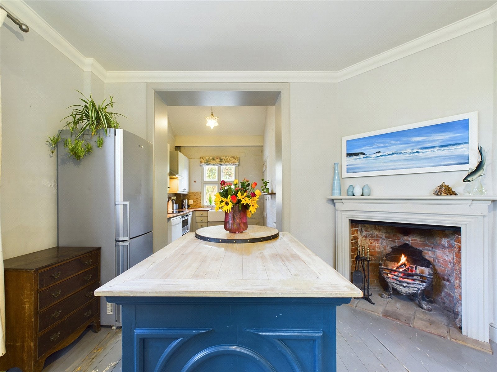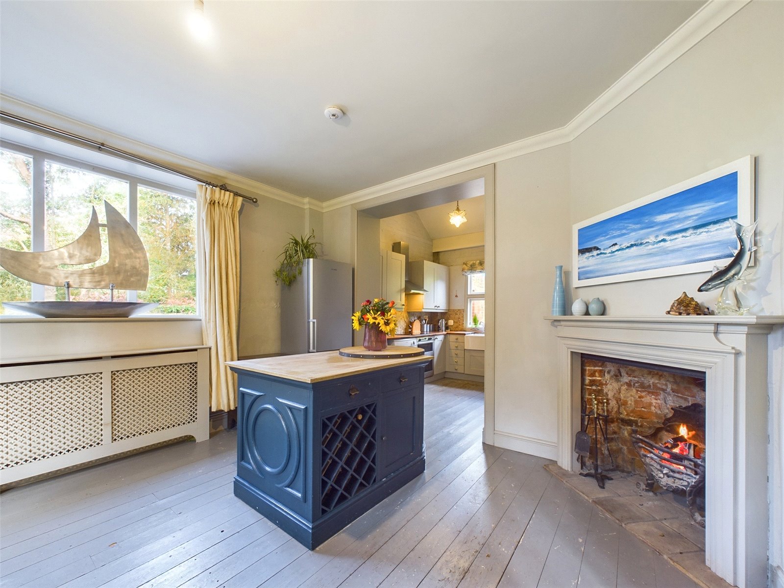 The stunning Kitchen/ Dining Room enjoys a dual aspect and a feature fireplace facilitating an open fire, further complemented by a superb island unit. The tasteful fitted Kitchen enjoys Shaker style units, complemented by a wooden worksurface incorporating a ceramic Butler style sink.
