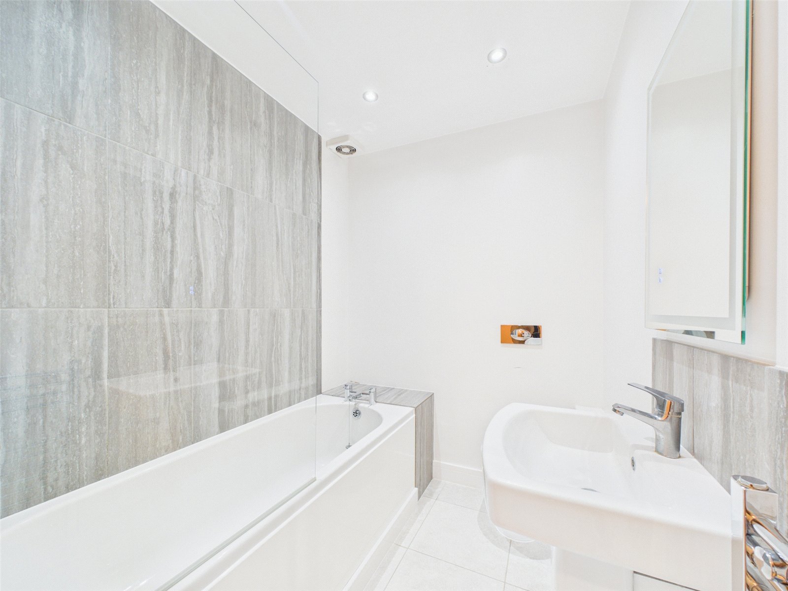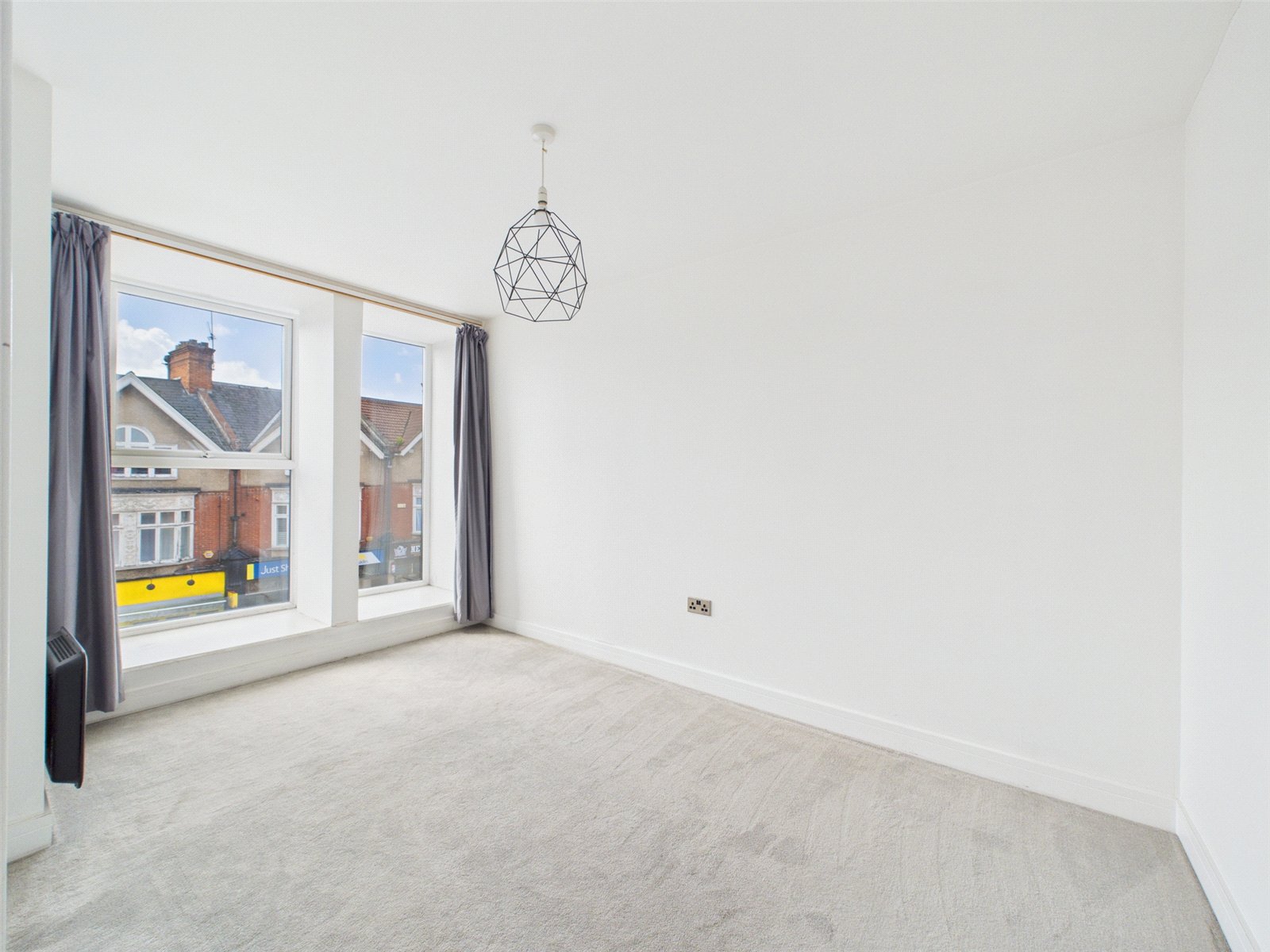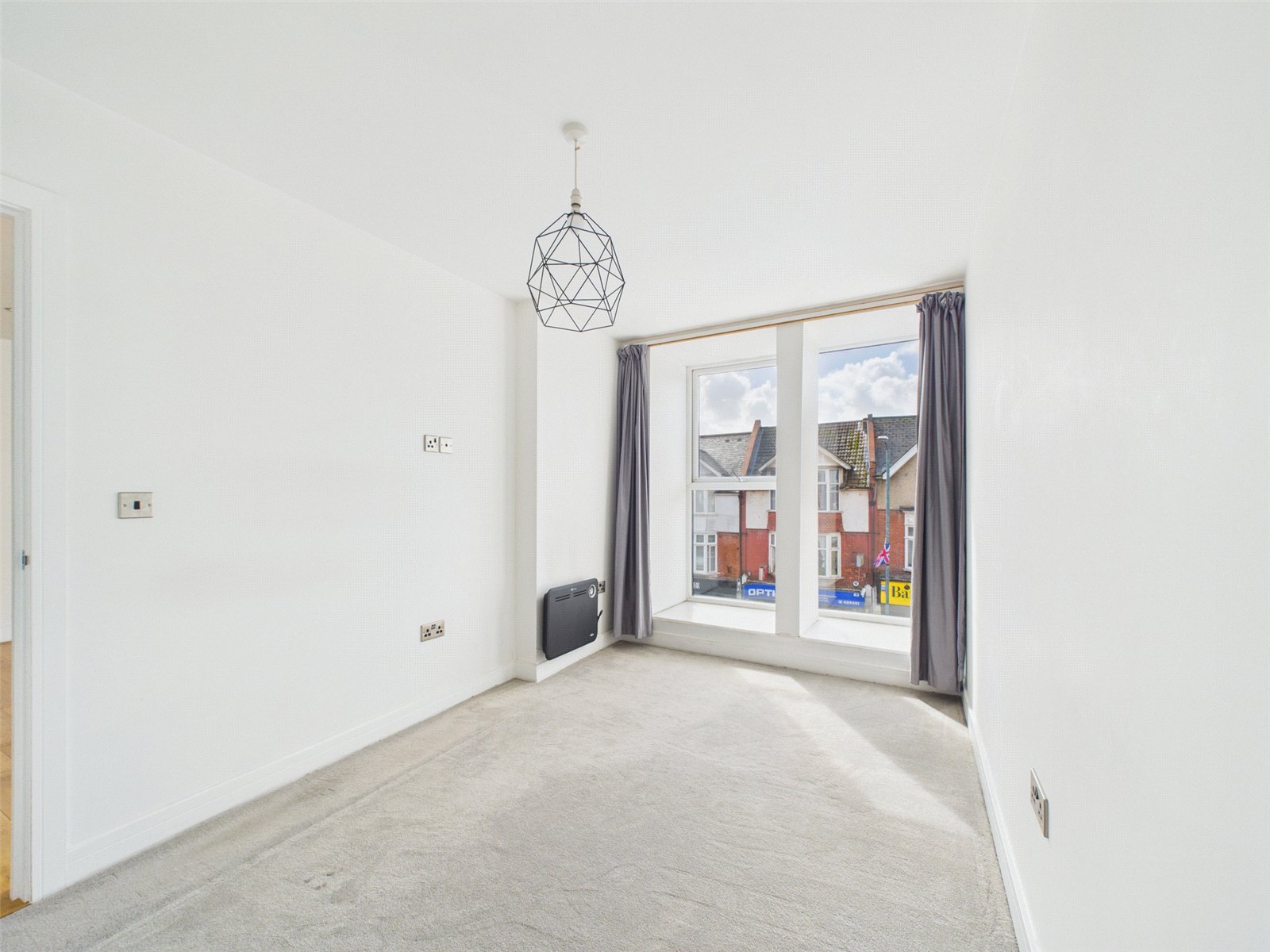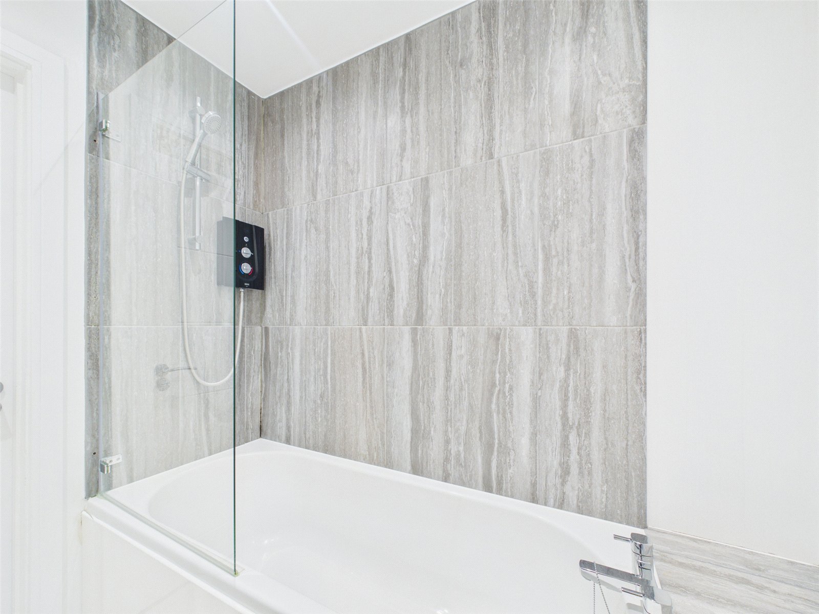 The open plan living space overlooks Southbourne Grove via large floor to ceiling windows. It is also nicely finished with a wooden floor to match the hall and features a Sleek kitchen area offering a good range of storage cupboards. There is an induction hob with an extractor hood above and matching oven below, as well as an integrated dishwasher and fridge freezer. A breakfast bar also offers space for barstools.
