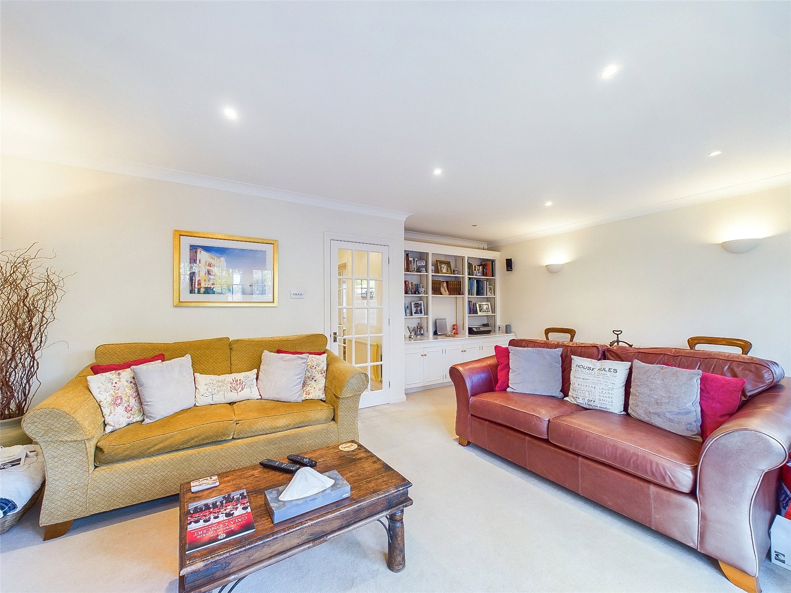 The spacious Living Room which enjoys a pleasant aspect and twin doors to the Rear Garden, features a tasteful built-in storage cabinet.