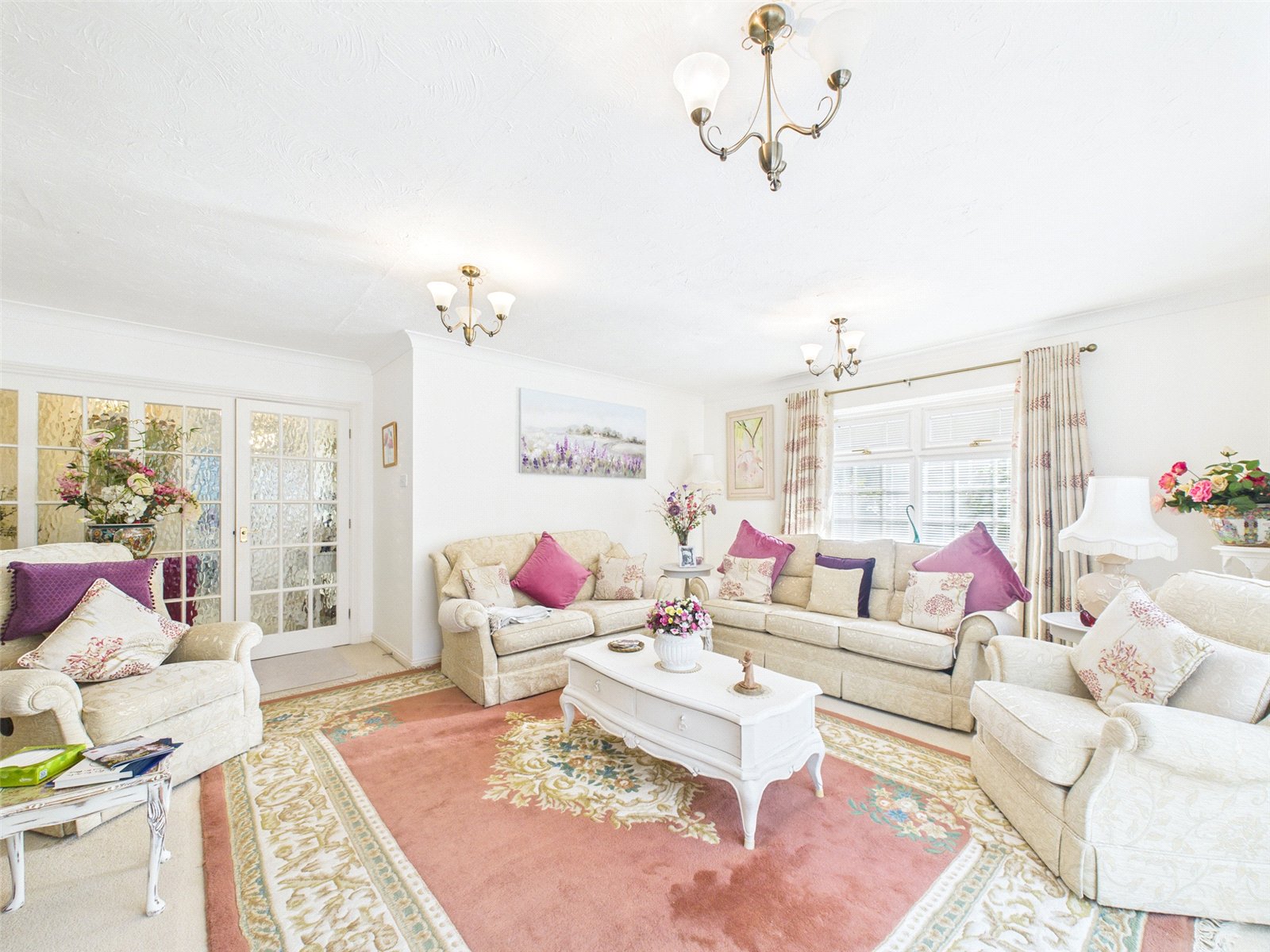 At the hub of the home, a particularly spacious Living Room enjoys a dual aspect, a feature fireplace and twin doors to the large impressive Conservatory, which enjoys fitted blinds and a pleasant outlook over the attractive Rear Garden.