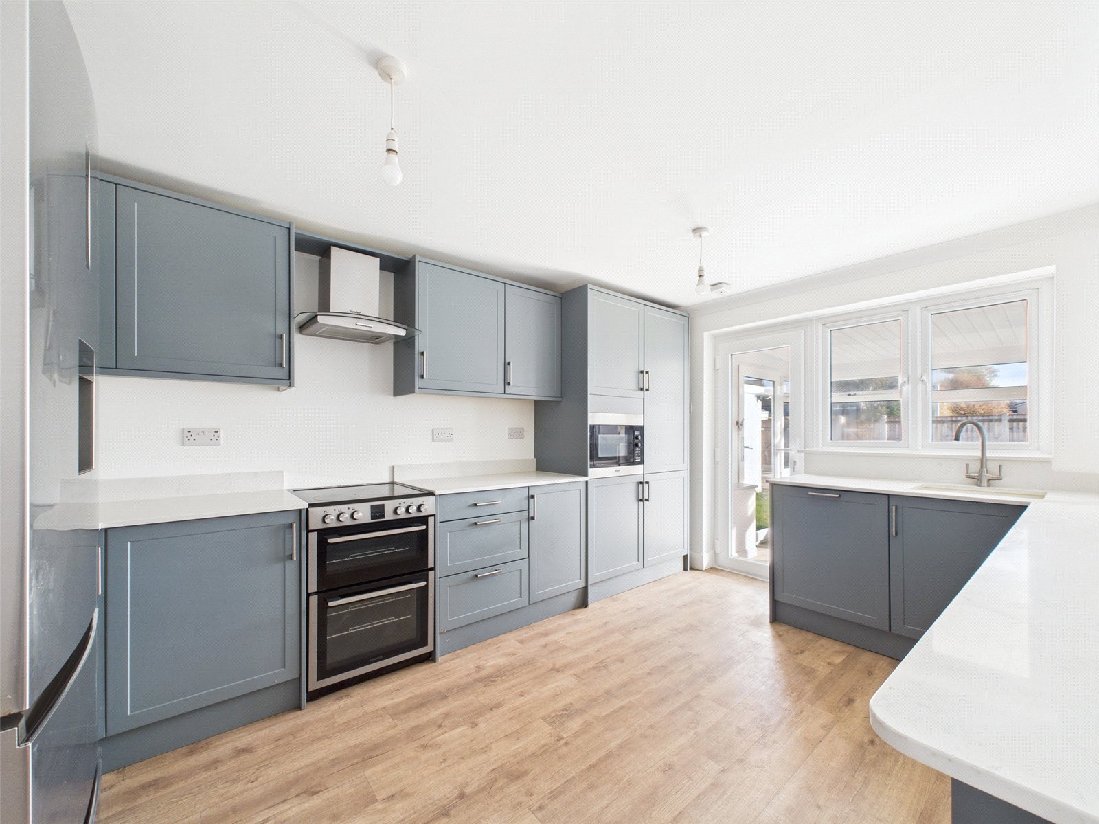 Three well-proportioned bedrooms are located on the ground floor. A modern family bathroom serves this level, finished with quality fittings and a clean, neutral design.