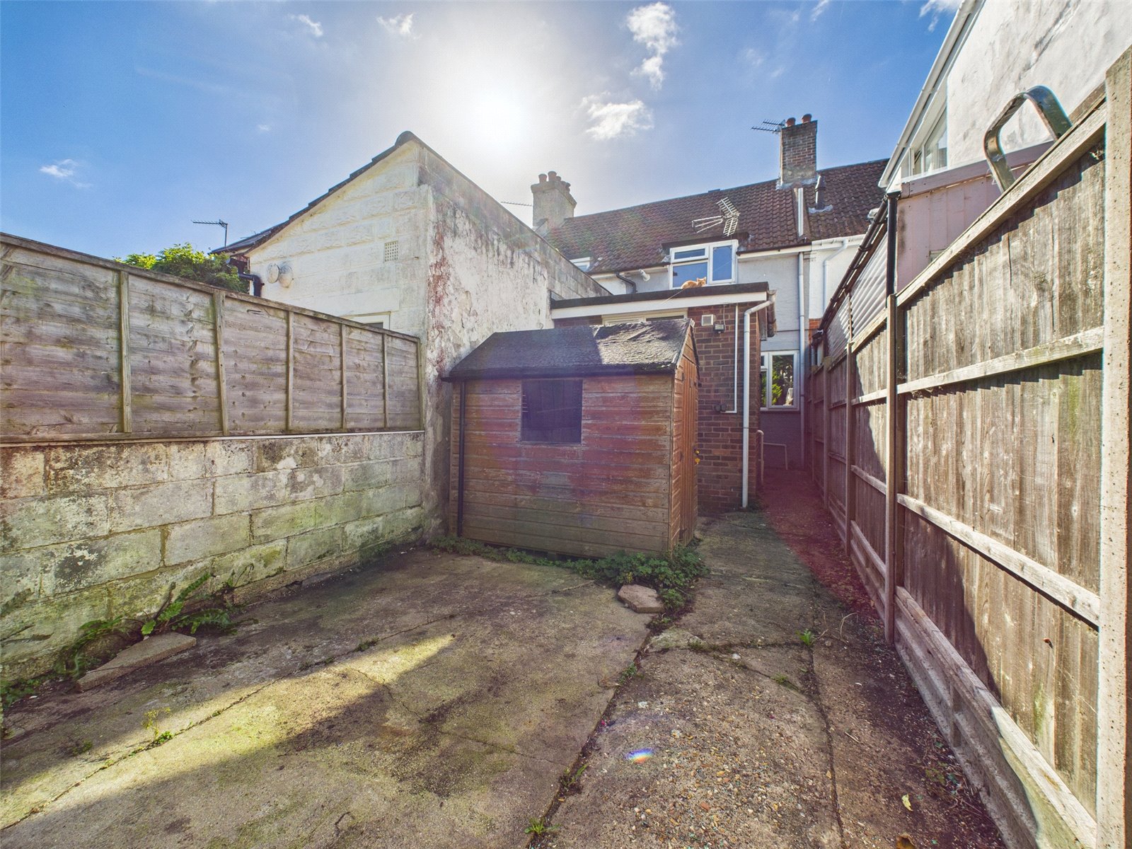 The garden is laid out for ease of maintenance with an area of patio to the immediate rear of the property and a useful storage shed.