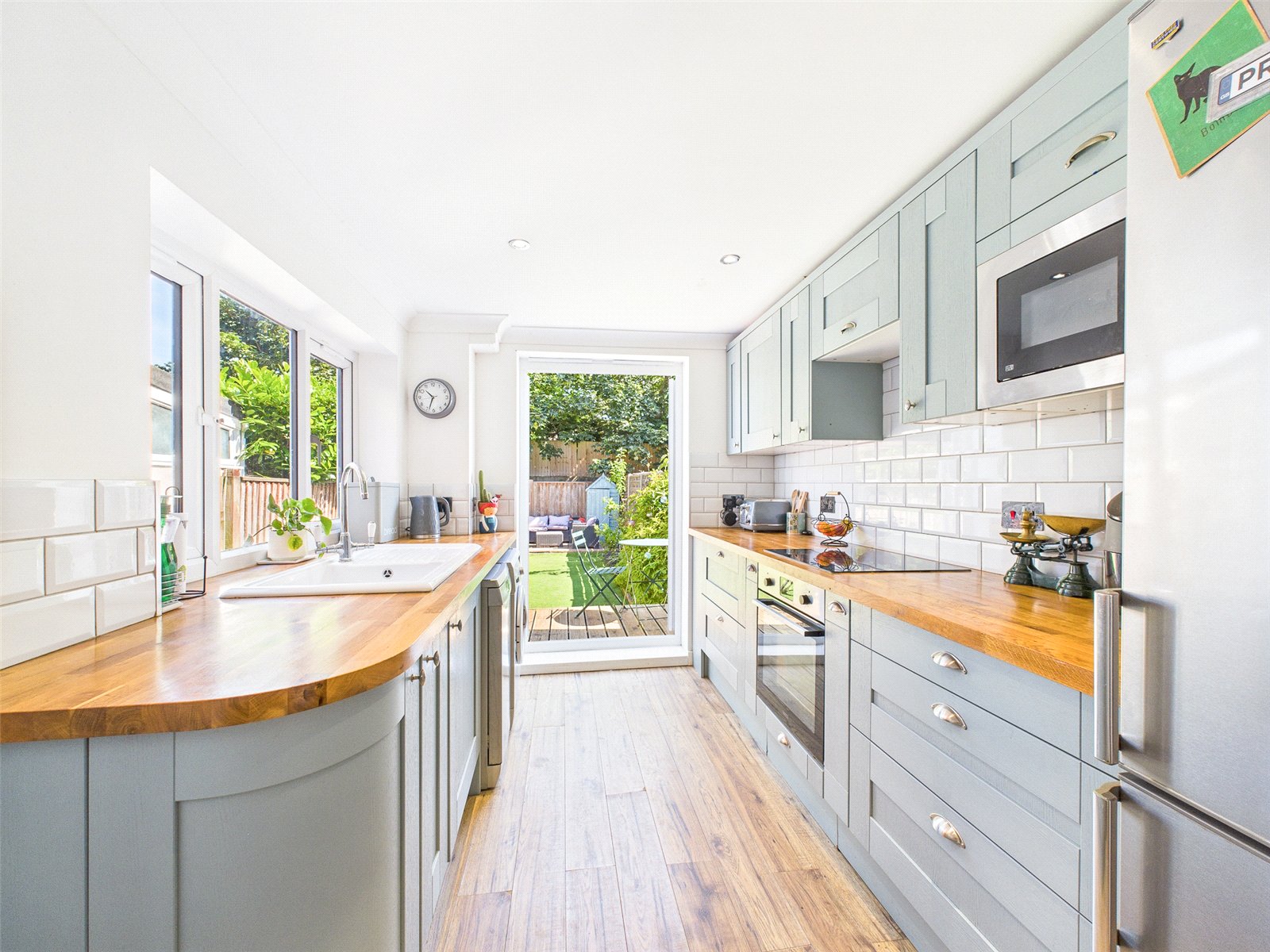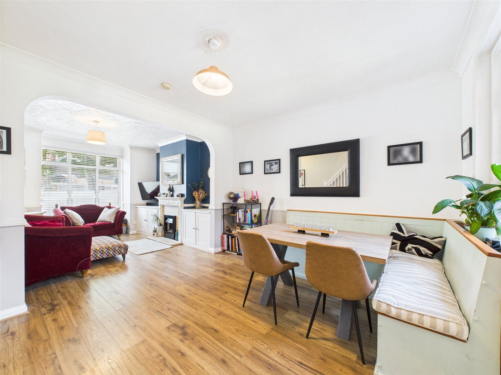 The front door leads into the entrance hall. The generous lounge/diner has a double aspect. The kitchen is set to the rear of the property with a range of modern base and eye level units. There is an integral cooker and hob as well as spaces for further appliances.
